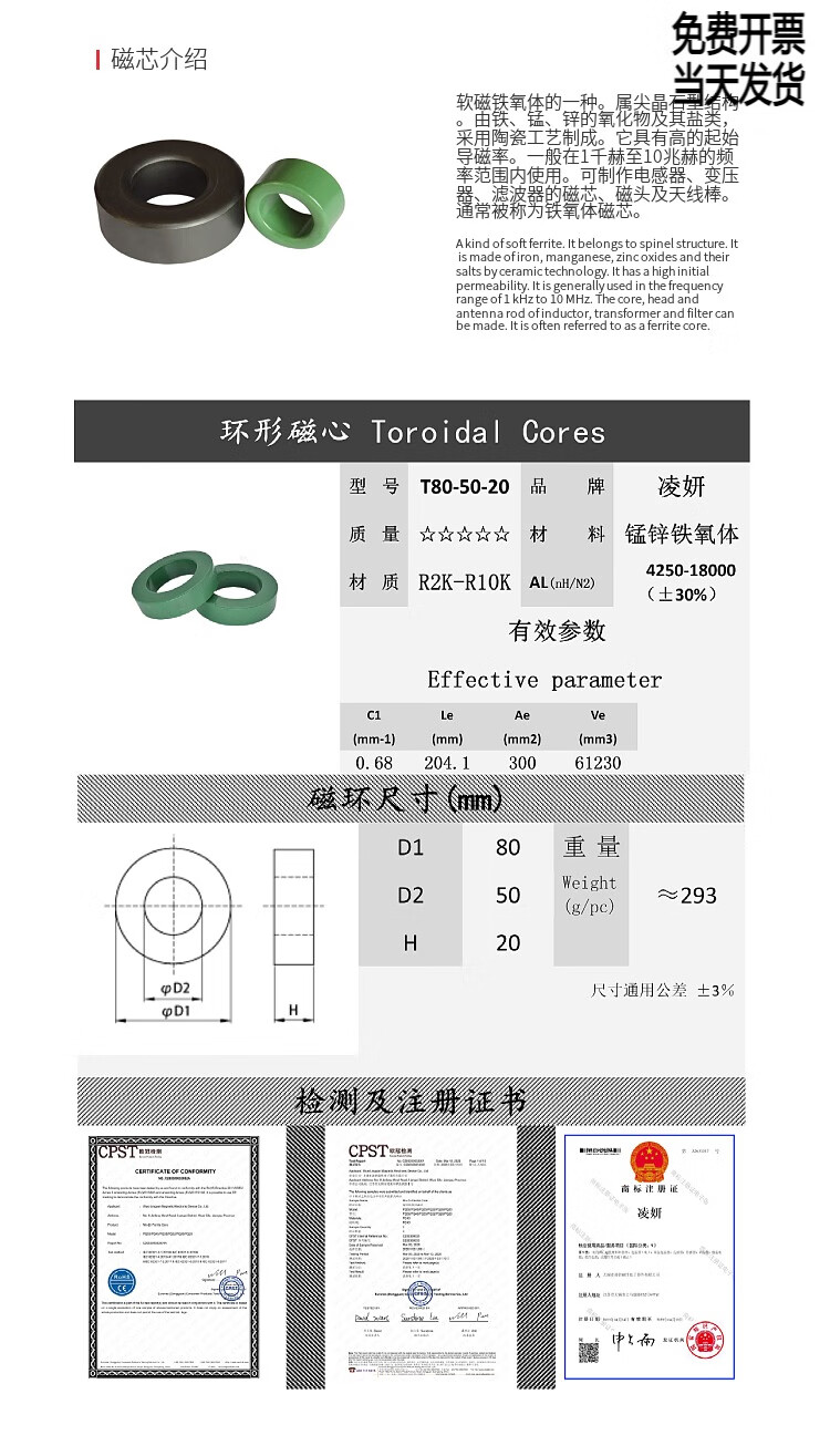 Manganese-zinc ferrite magnetic ring 805020 filtering anti-interference high-power high-frequency ferrite core inverter 63*38*25 (black bare ring)