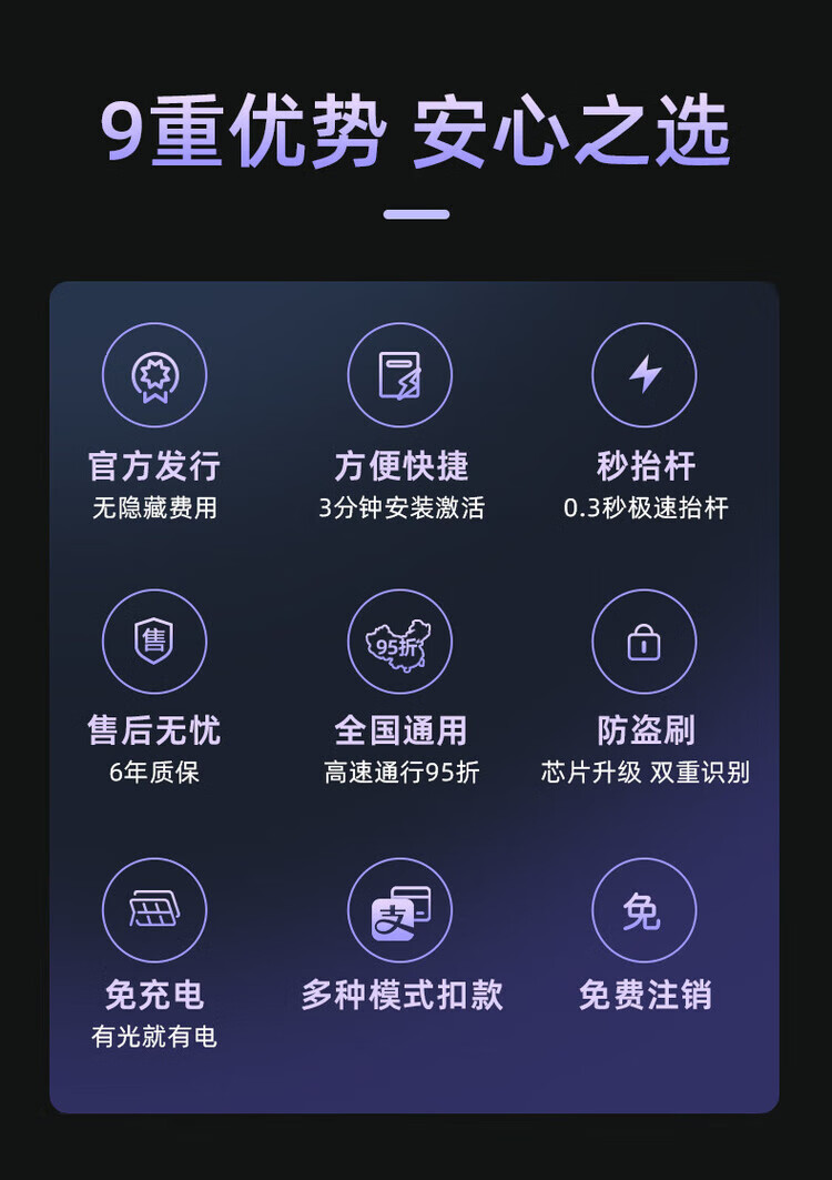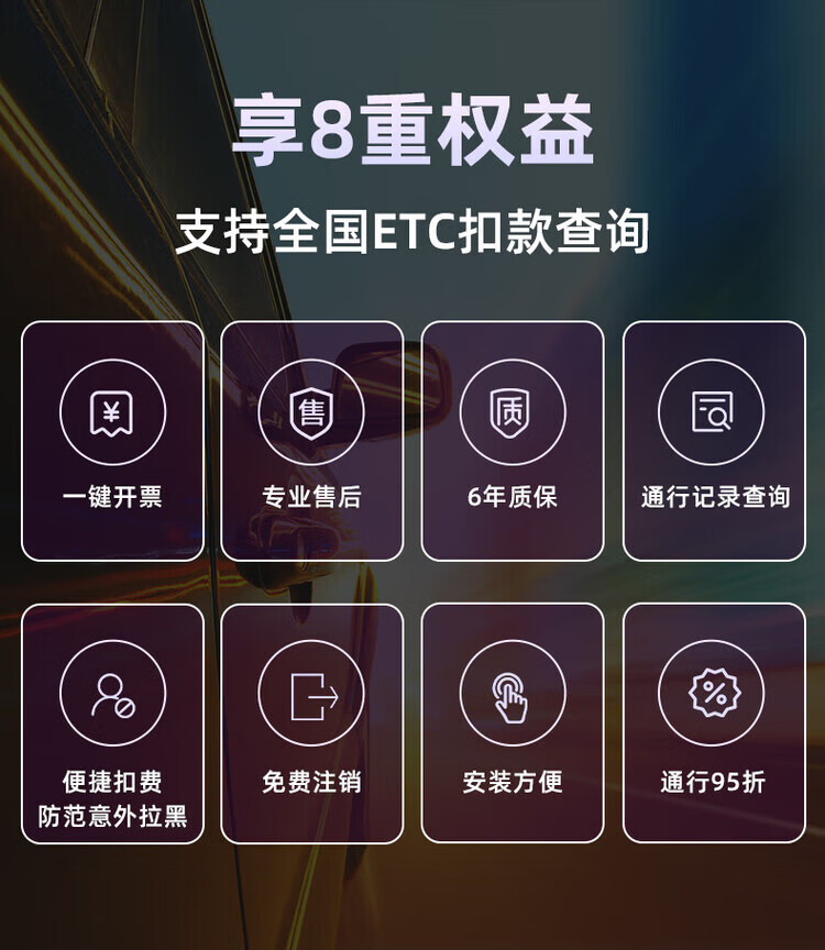 Qianbaitu etc. is free of charge, no service fees, no card, etc. Equipment supports hidden installation of high-speed solar energy, 50% off, insert card ETC, tie Z Alipay to deduct fees