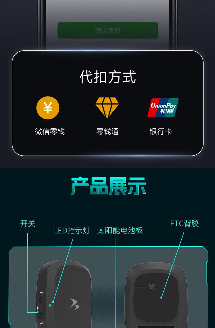 Qianbaitu etc. WeChat deduct hidden ETC cardless equipment to apply for national high-speed pass without installing glass solar energy upgraded version - supports transfer + license change + can be closed