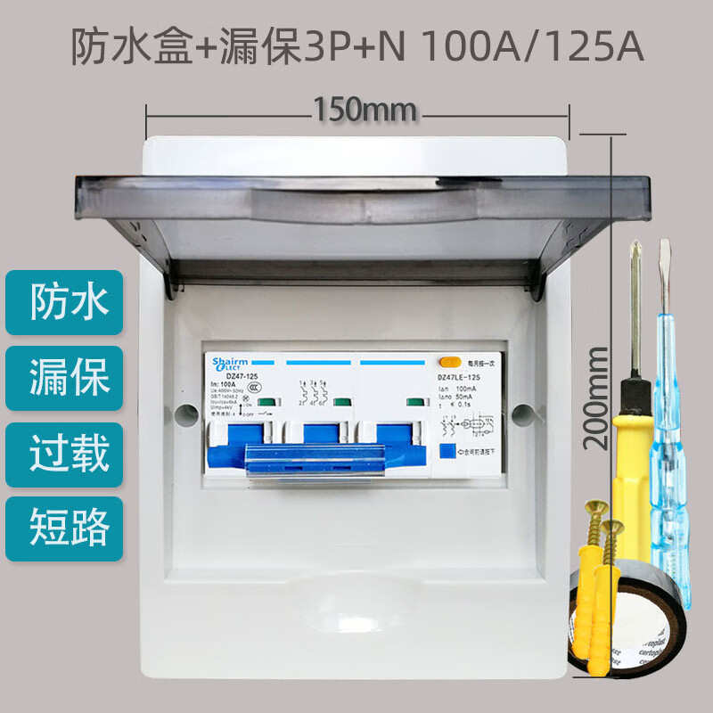 380V Shanghai People's waterproof box + leakage protection 3P three-phase four-wire 4P air switch with leakage protection circuit breaker 40A 3P+N
