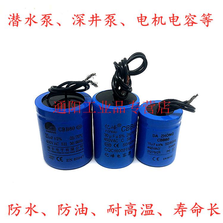 Fully sealed waterproof oil-immersed capacitor submersible pump 450v oil-immersed deep well pump capacitor 20/25/30/35/40uF (random skin color) 10UF (38*74mm)