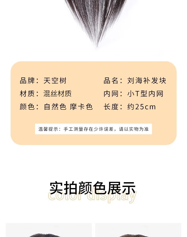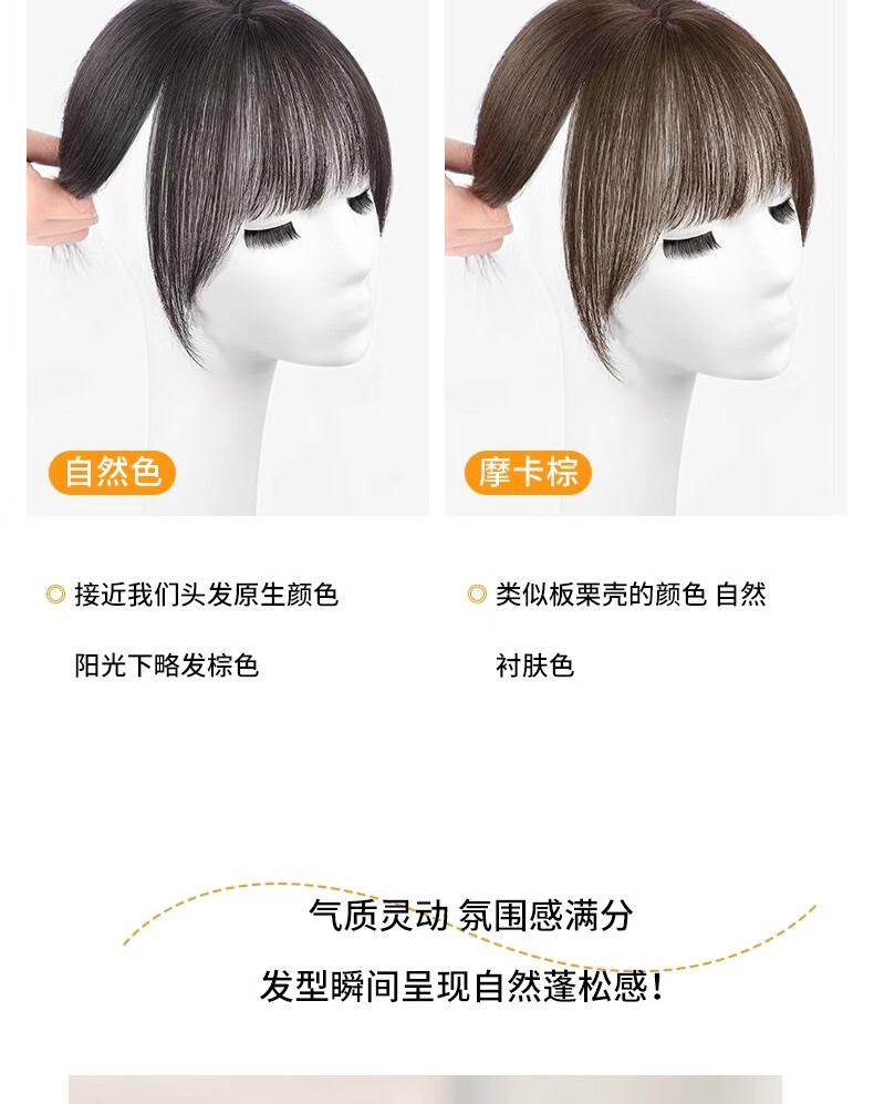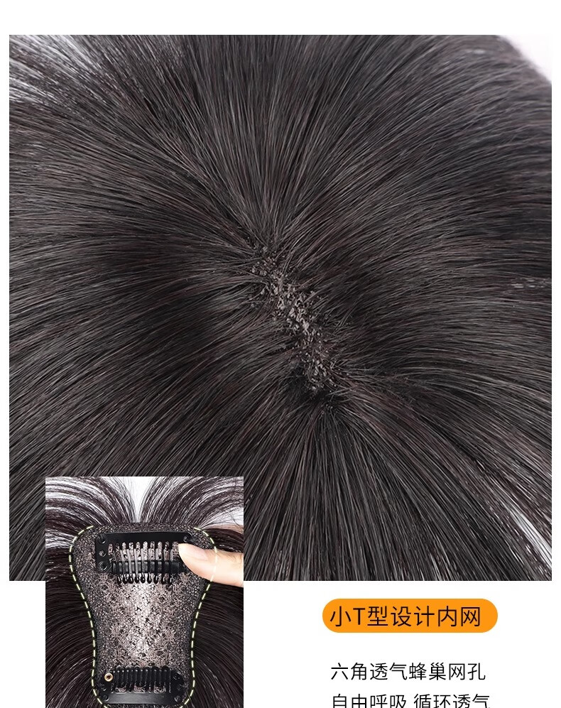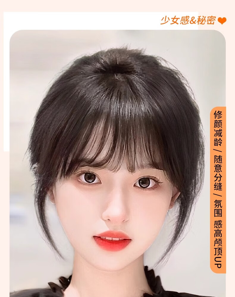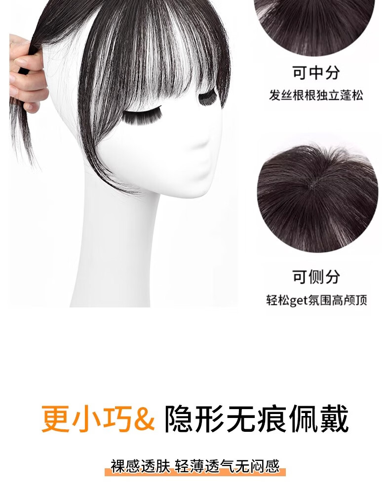 Sky tree bangs wig for women, top replacement, real hair, full human hair, high cranium, extra volume to cover white hair, French fake bangs, upgraded T-shaped French bangs, 6*8, natural color