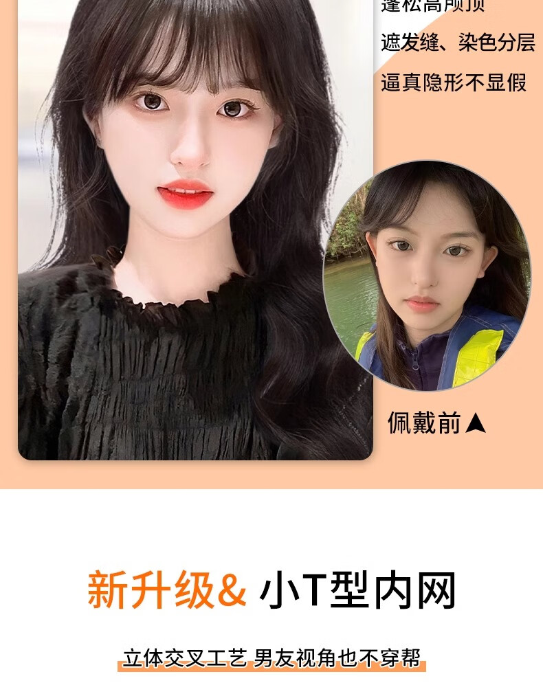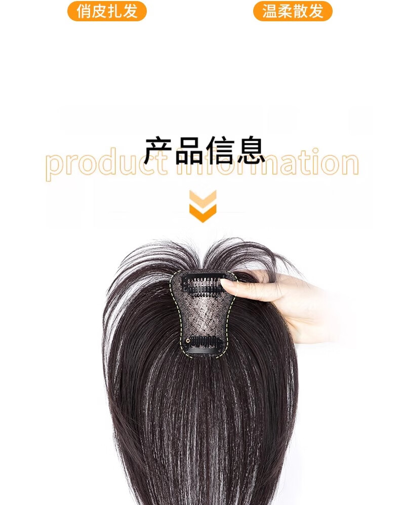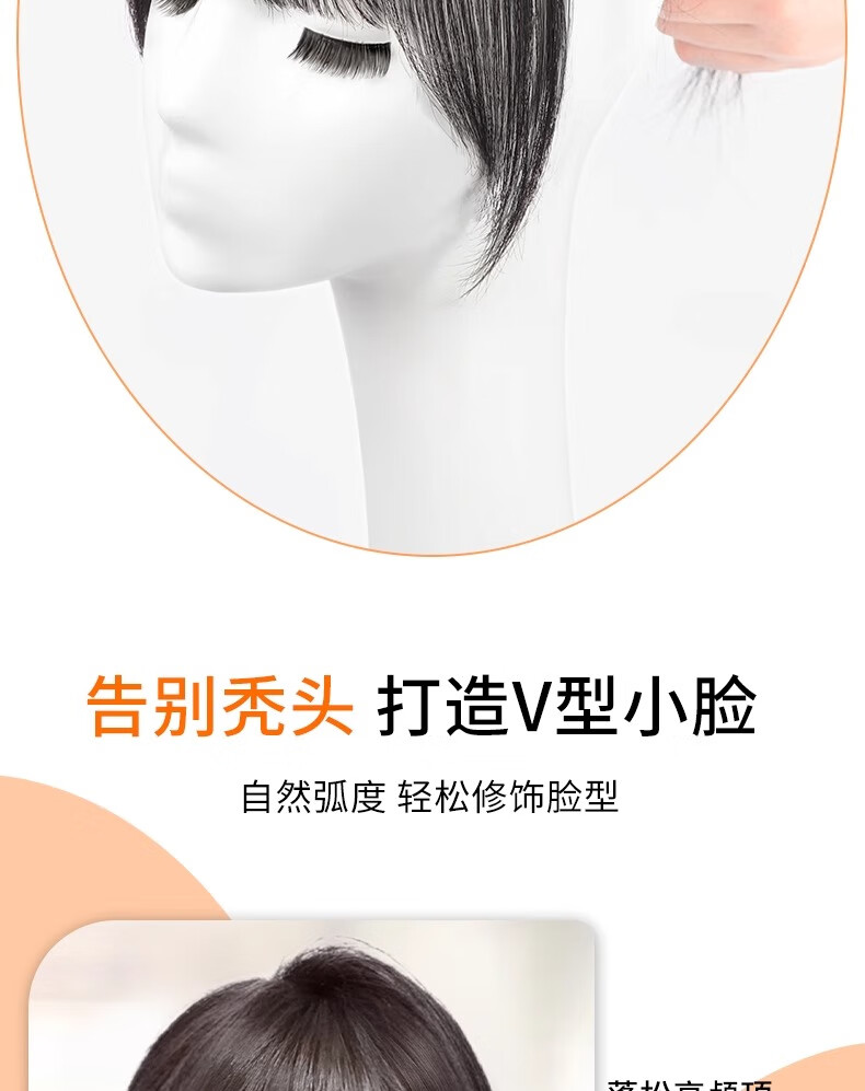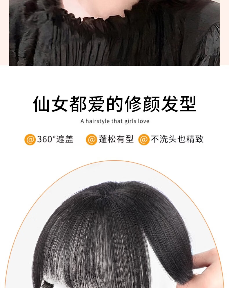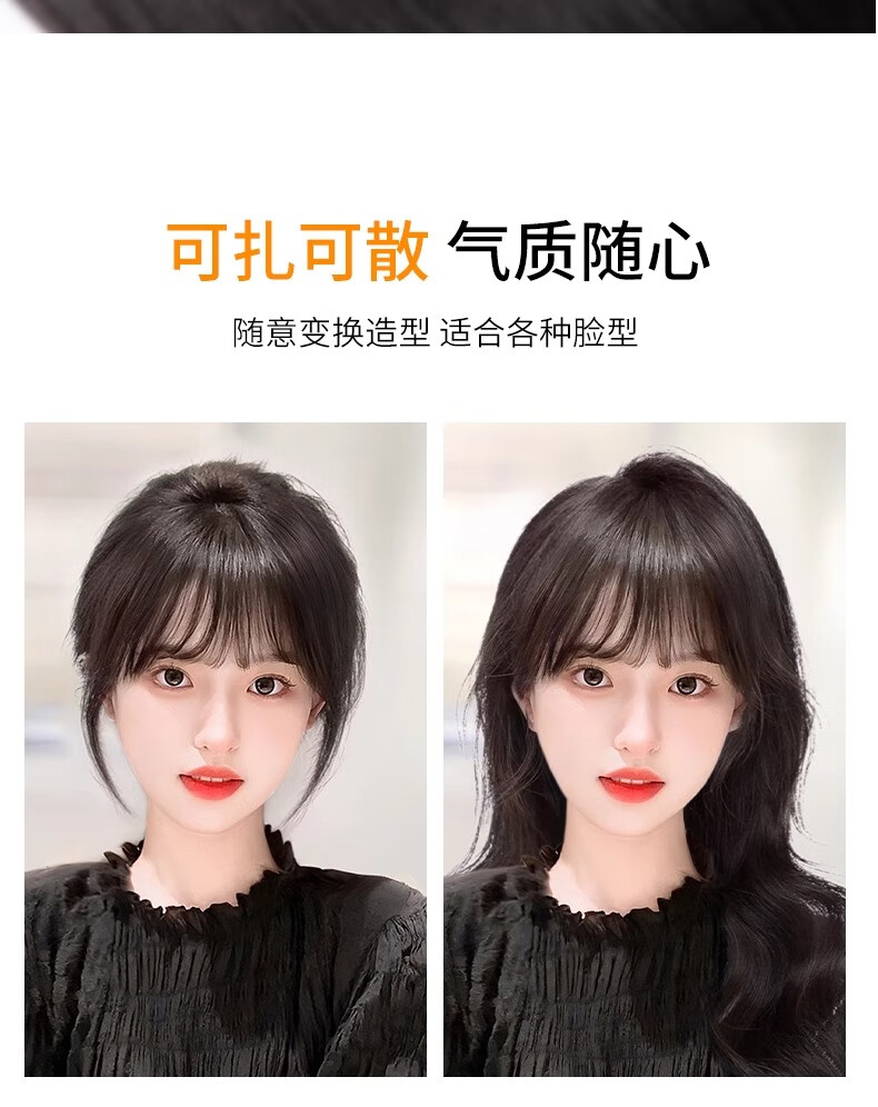 Sky tree bangs wig for women, top replacement, real hair, full human hair, high cranium, extra volume to cover white hair, French fake bangs, upgraded T-shaped French bangs, 6*8, natural color