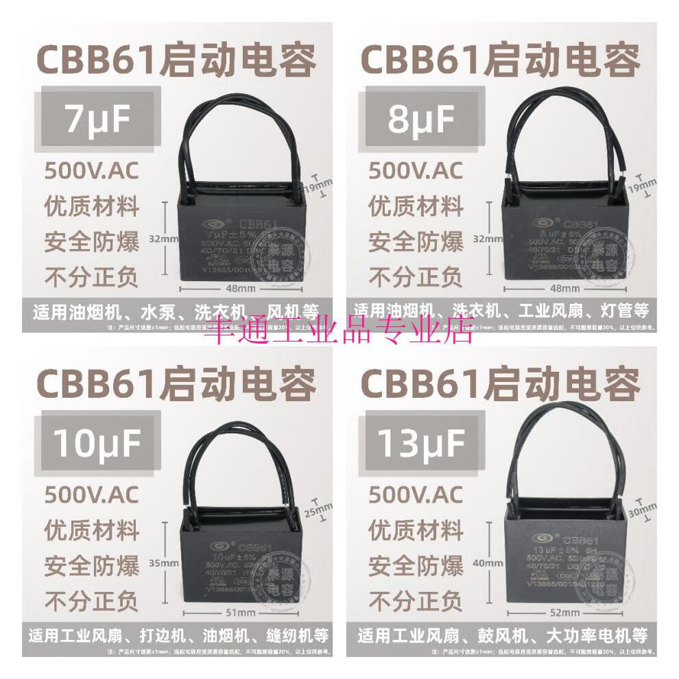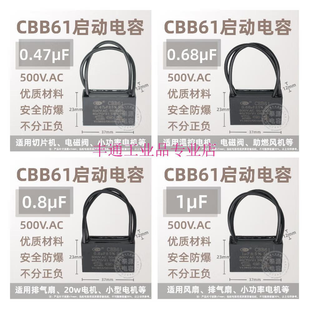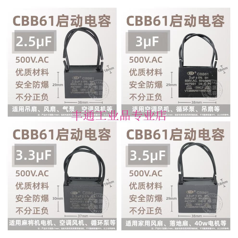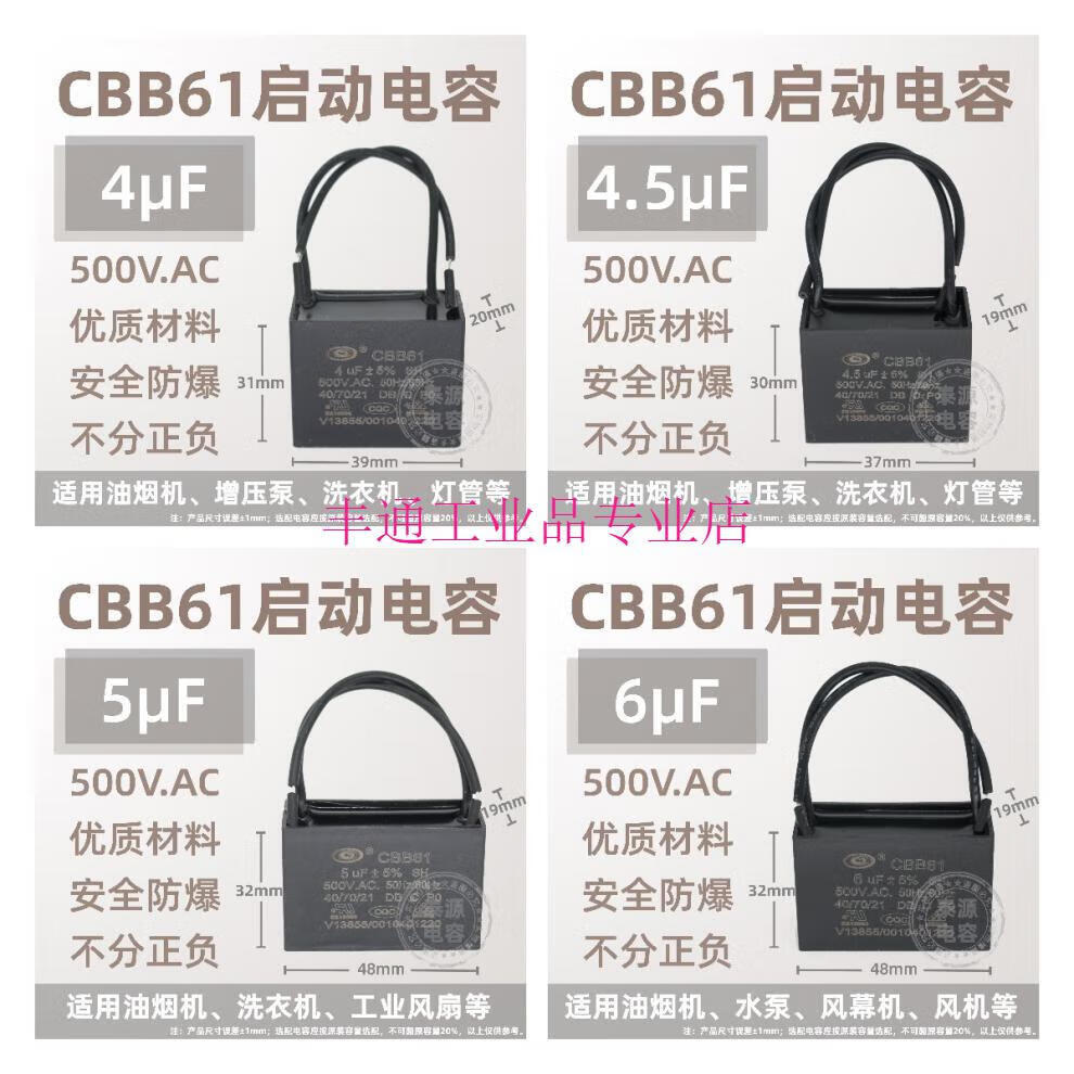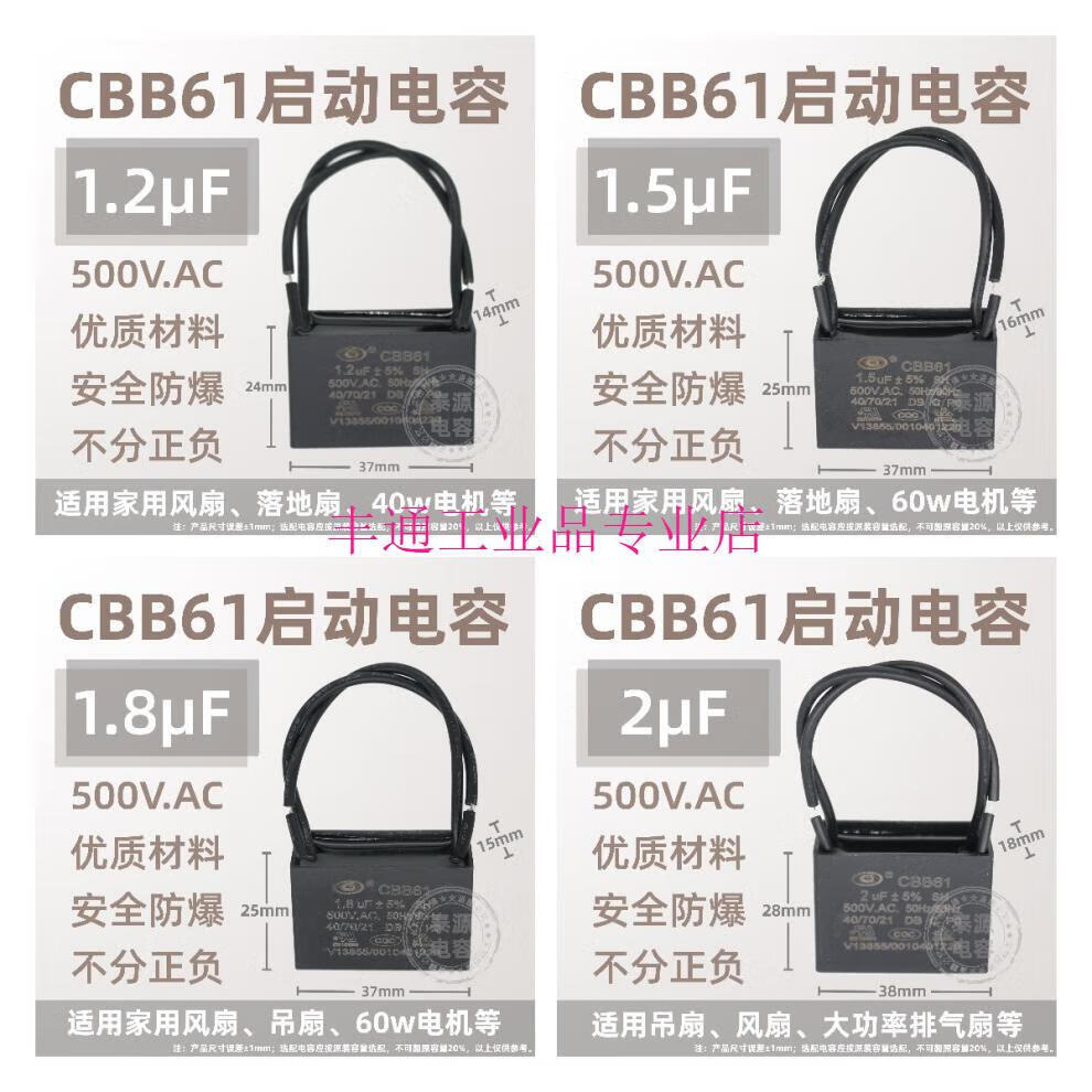 CBB61 fan ceiling fan range hood starting capacitor 1.2/1.5/1.8/2.5/3/4uf~13 microfarads 500V 4uf