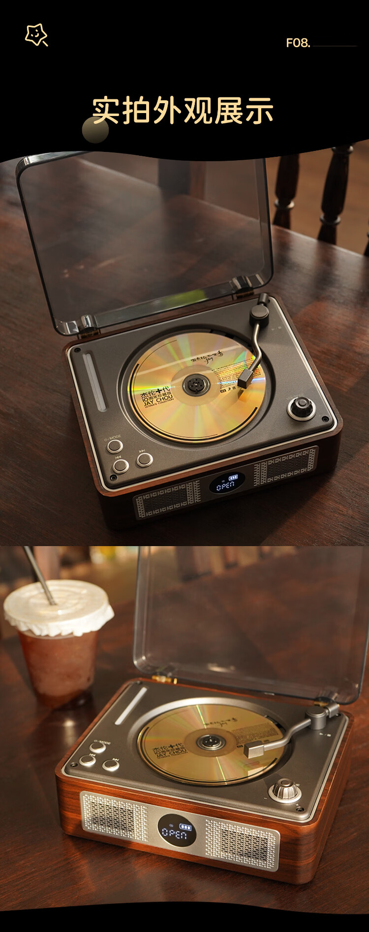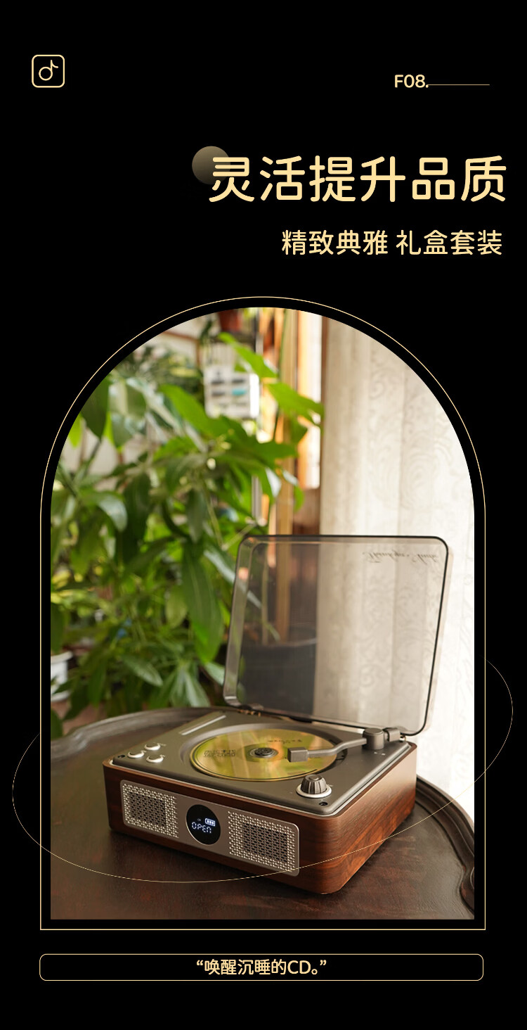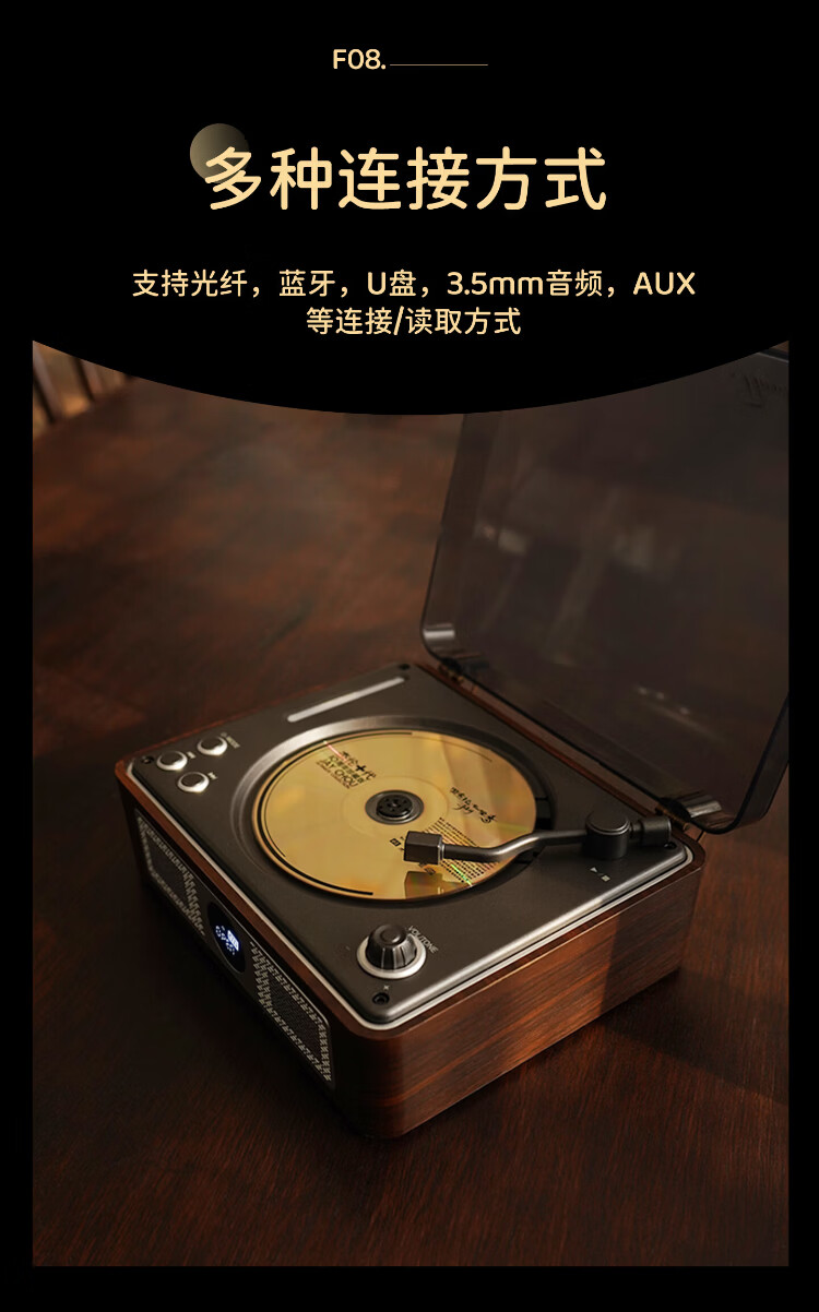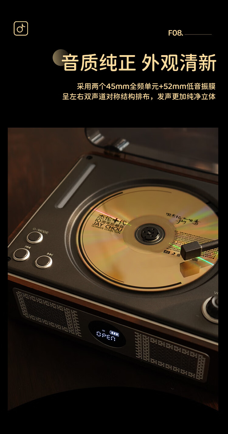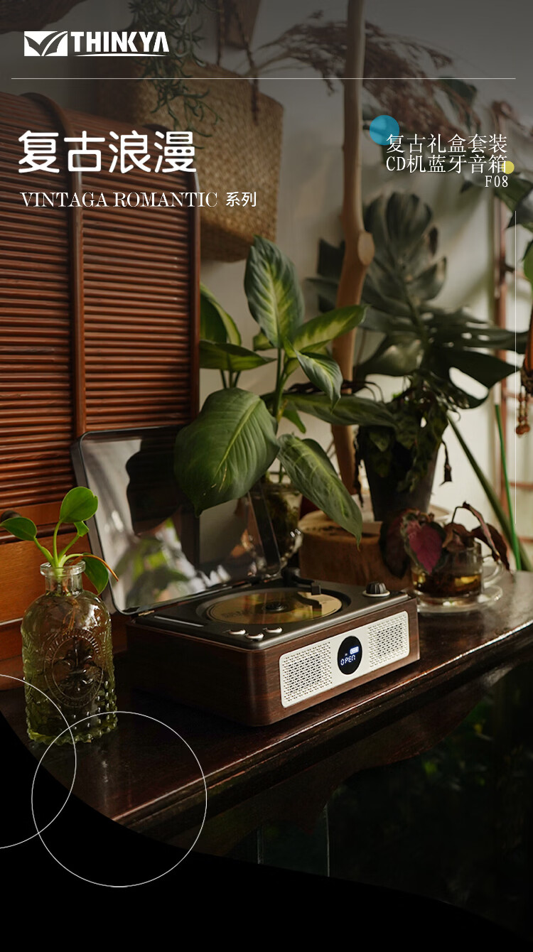 THINKYA F08 Retro CD Player Audiophile Album Player Portable All-in-One CD Player Audio Bluetooth Speaker Portable Audio Birthday Gift Walnut Color