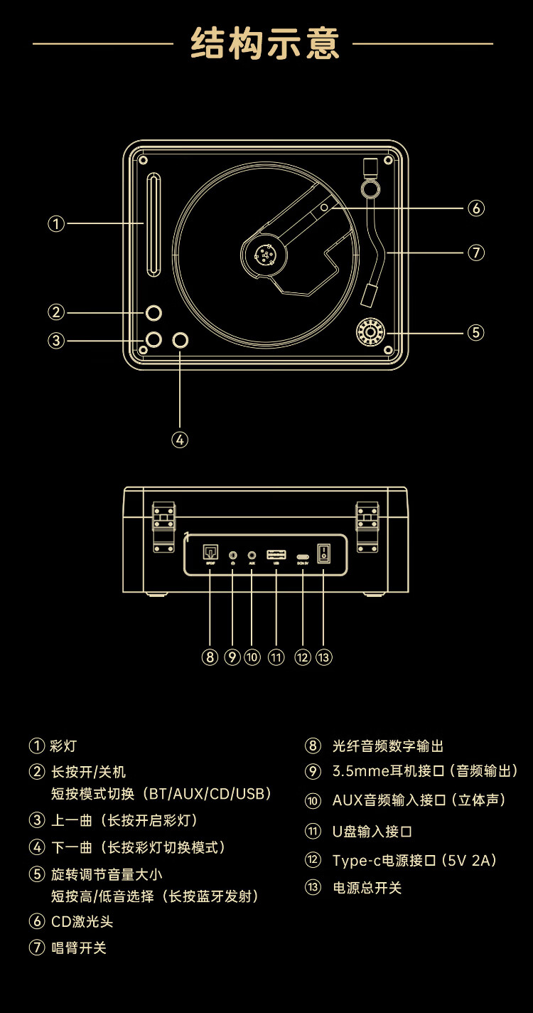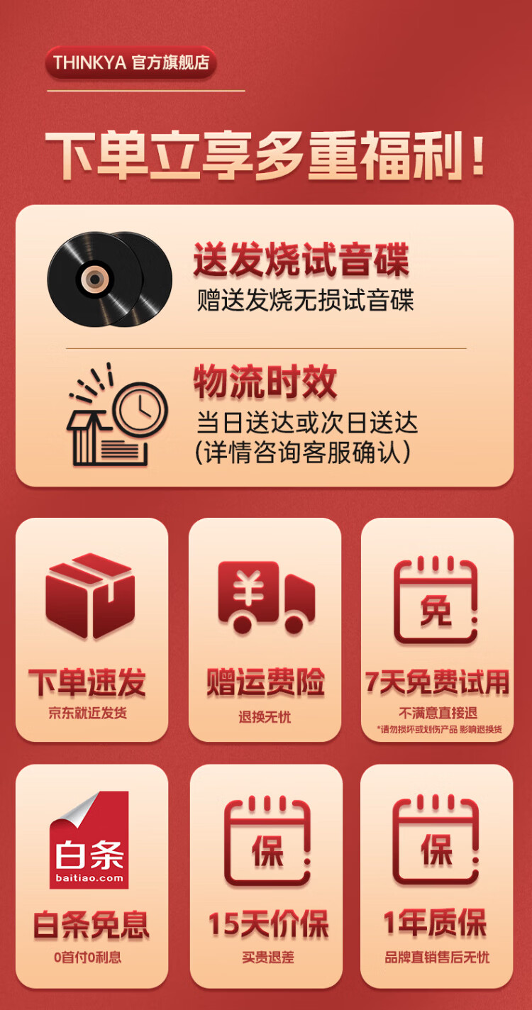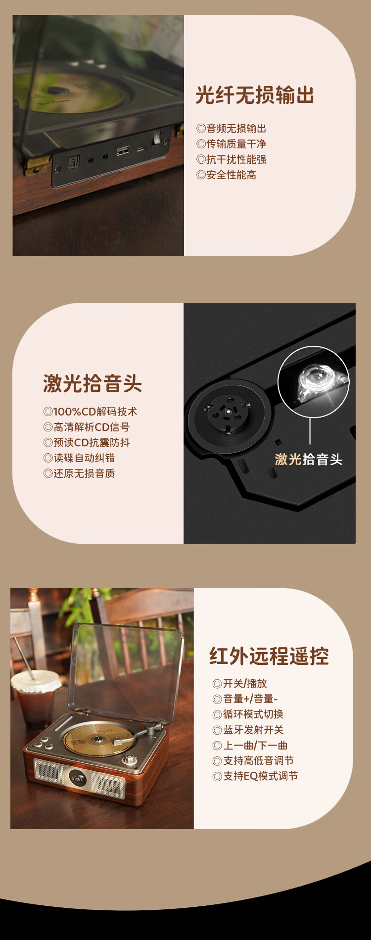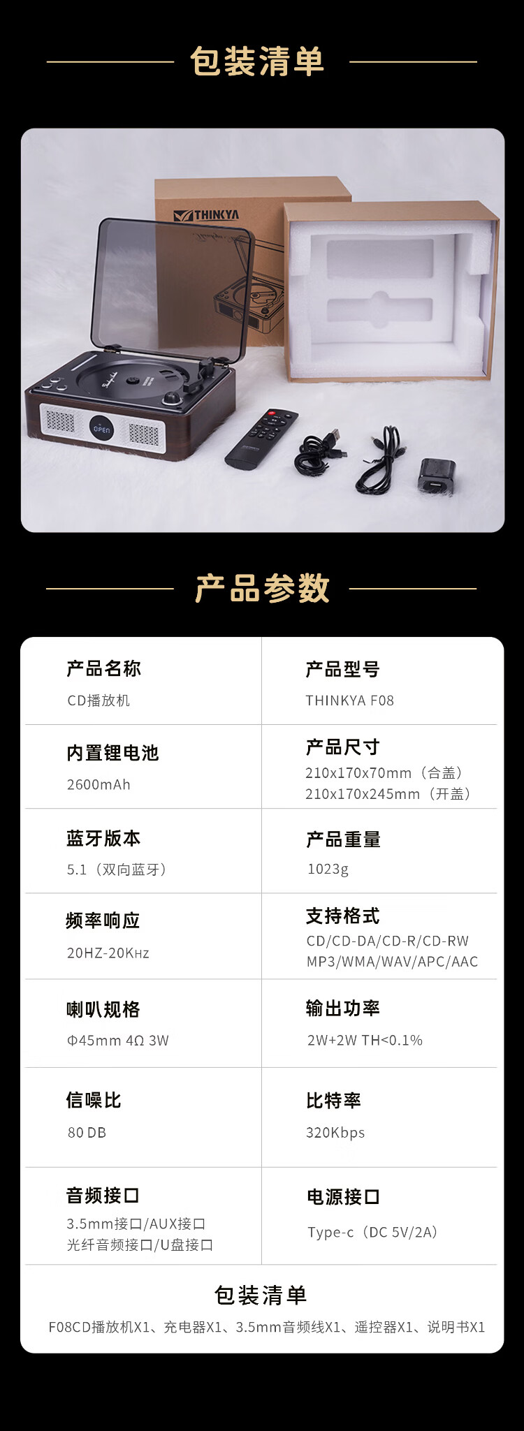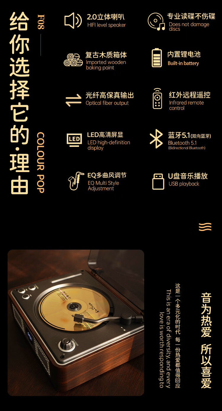 THINKYA F08 Retro CD Player Audiophile Album Player Portable All-in-One CD Player Audio Bluetooth Speaker Portable Audio Birthday Gift Walnut Color