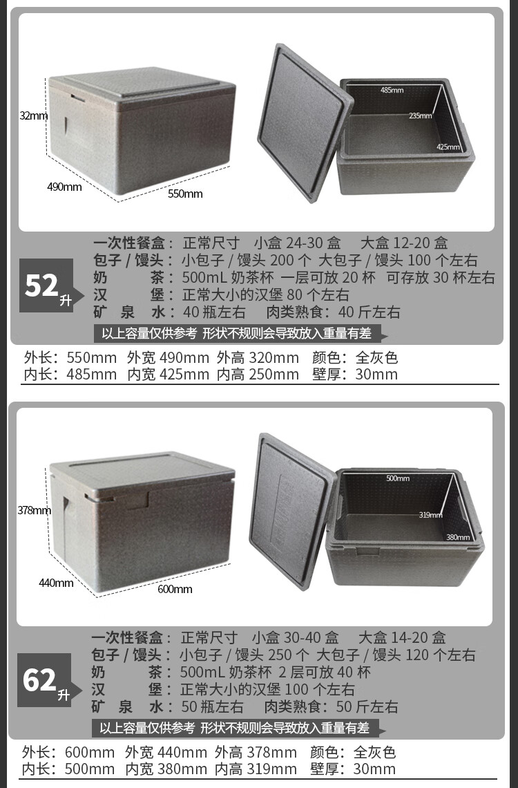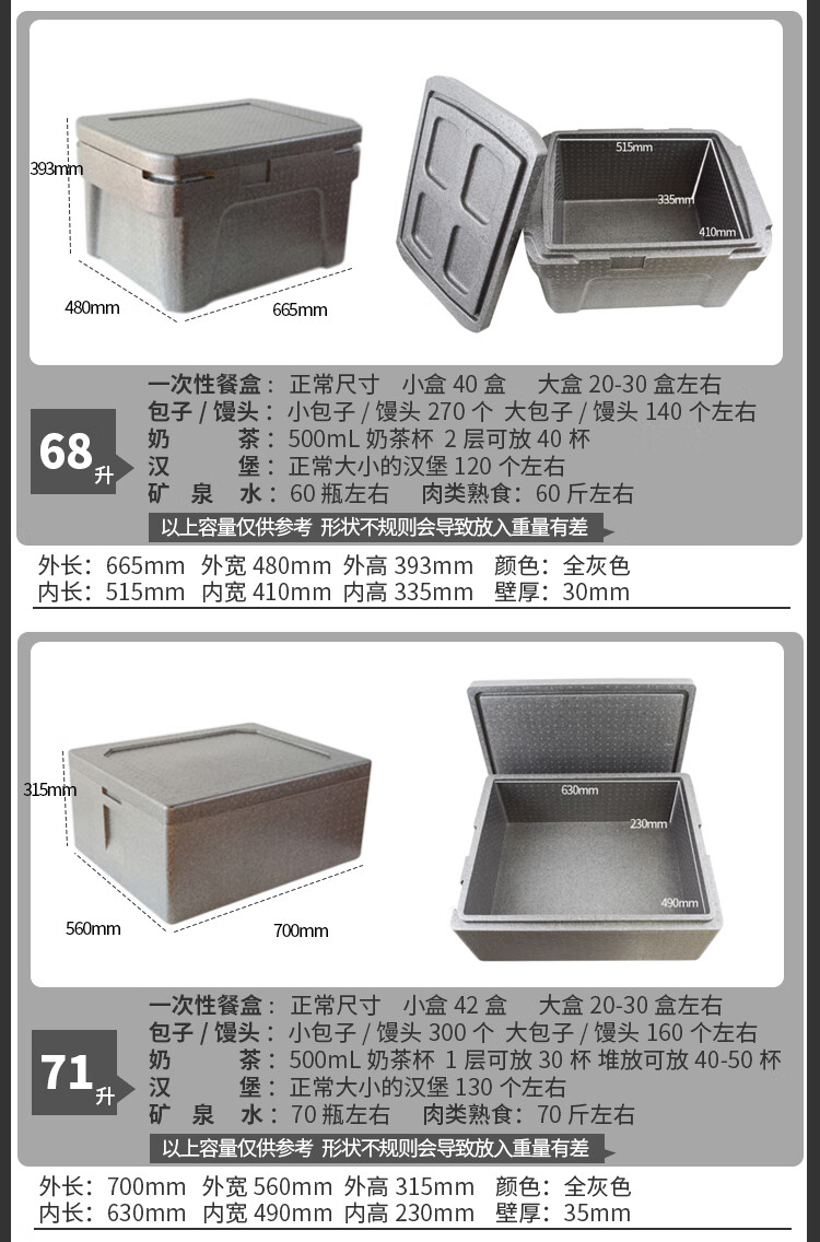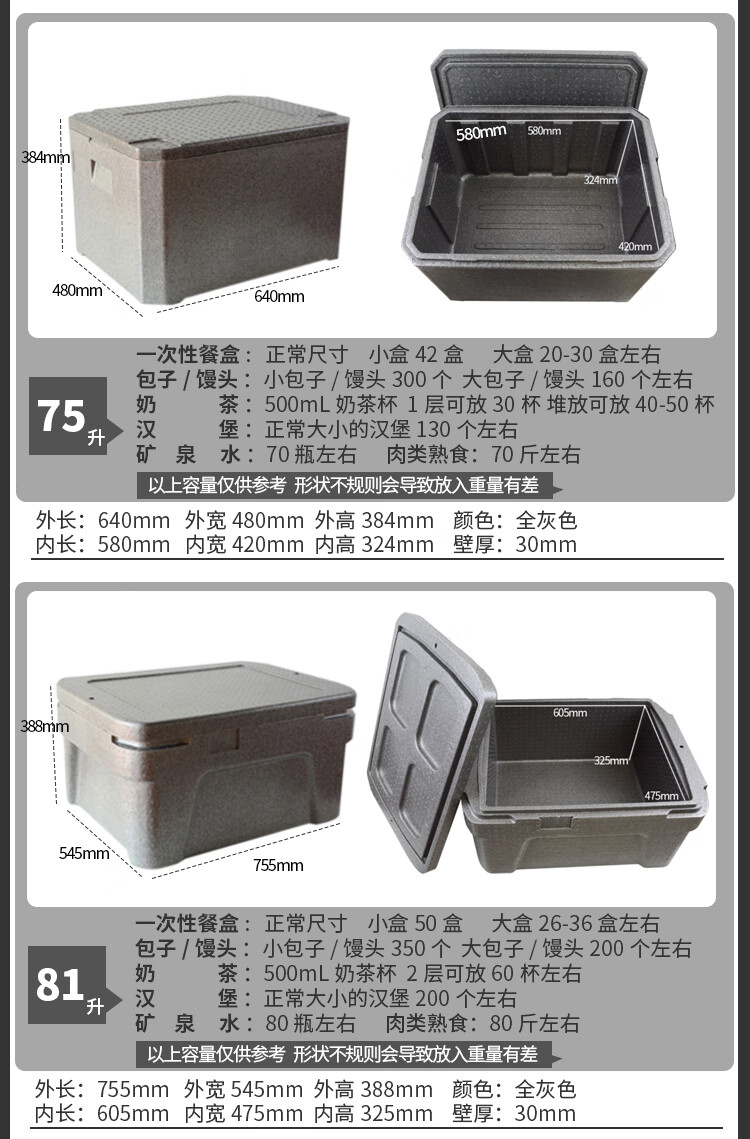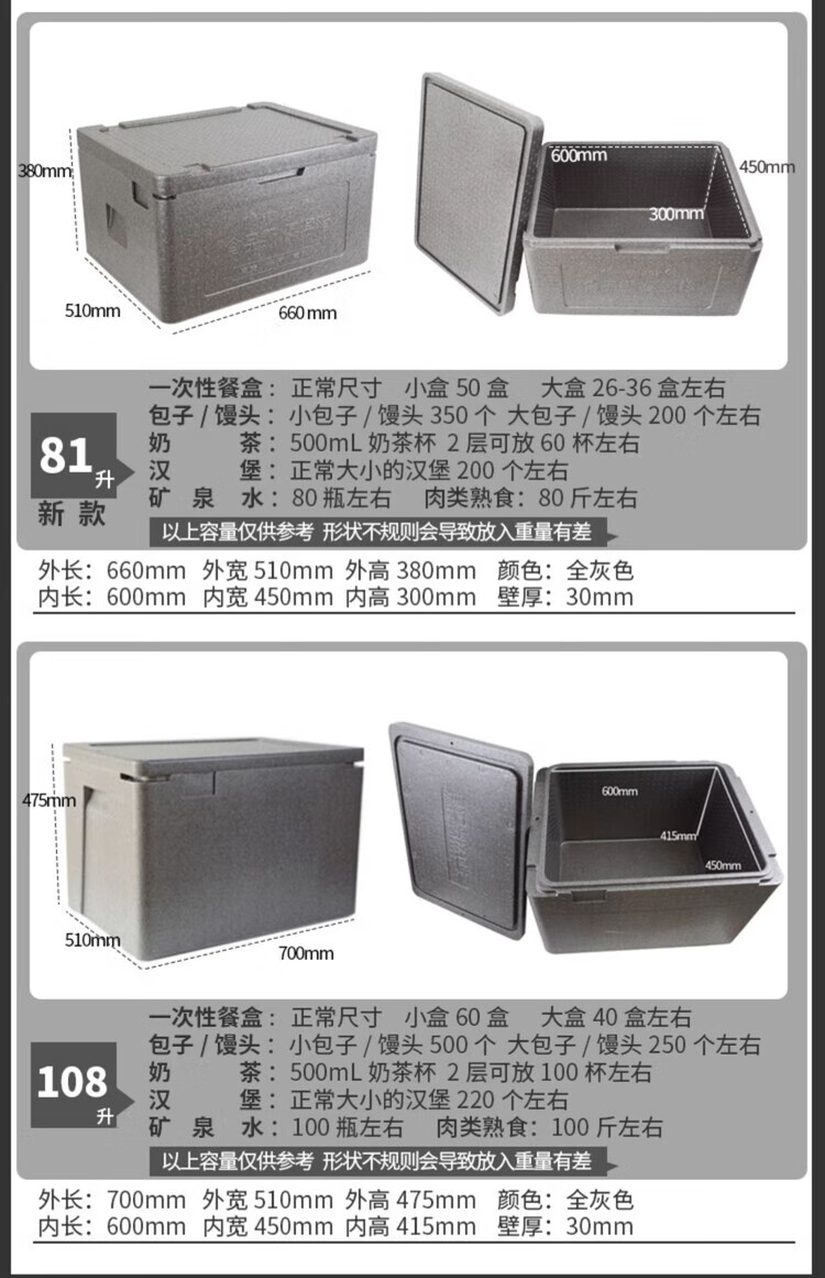 Huapai insulated box commercial stall-level canteen hotel refrigerated box fresh-keeping epp large foam box take-out box new 81L+ hinge (free ice bag)