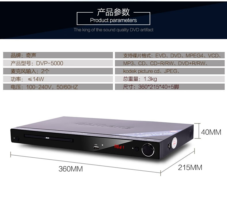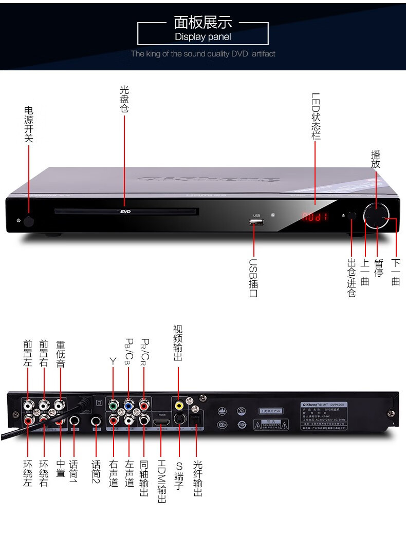 QISHENG DVP-5000 early education home DVD player VCD player children's CD player HDMI high-definition DTS Bluetooth version DVP-5000DTS decoding version without Bluetooth