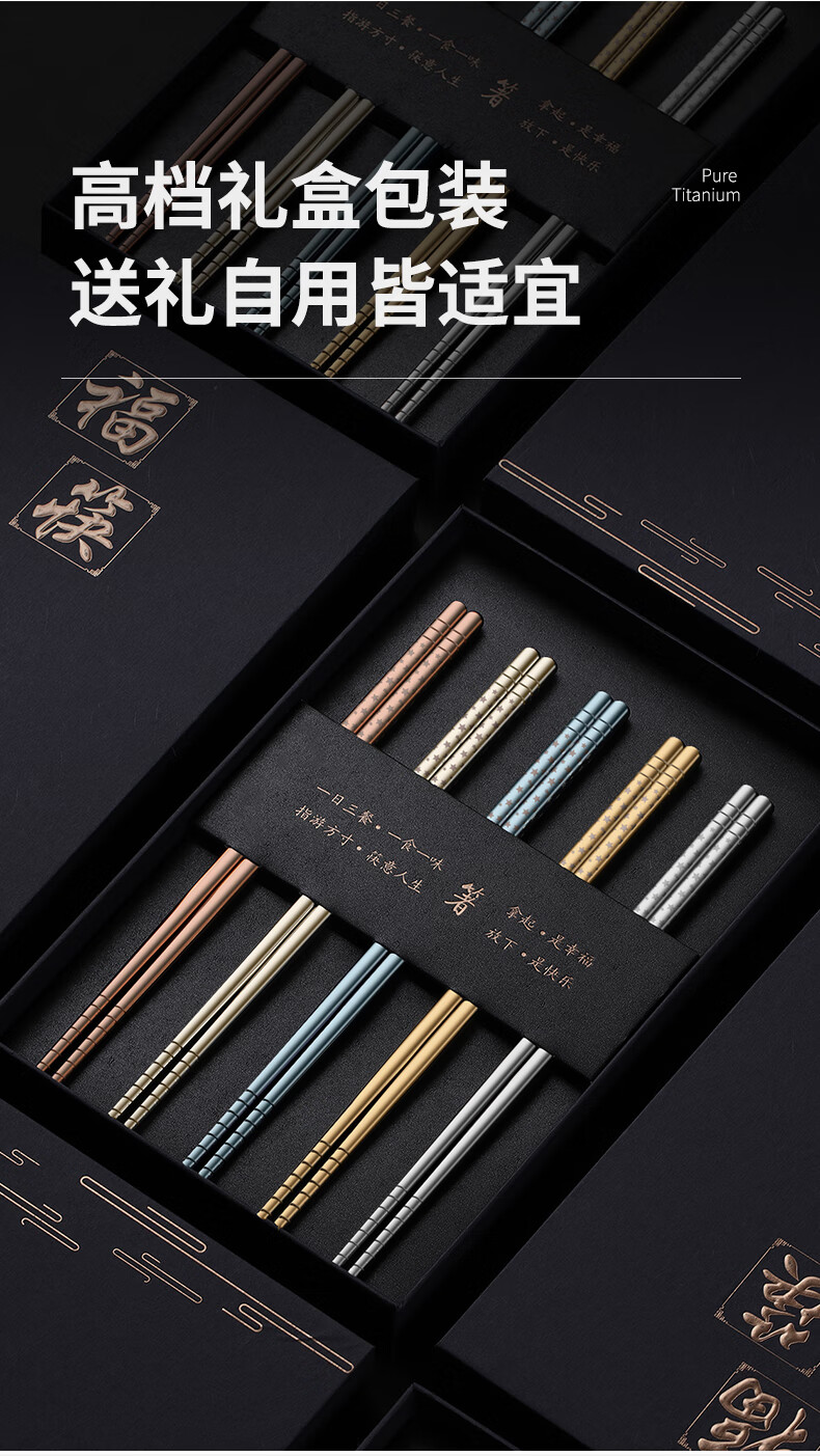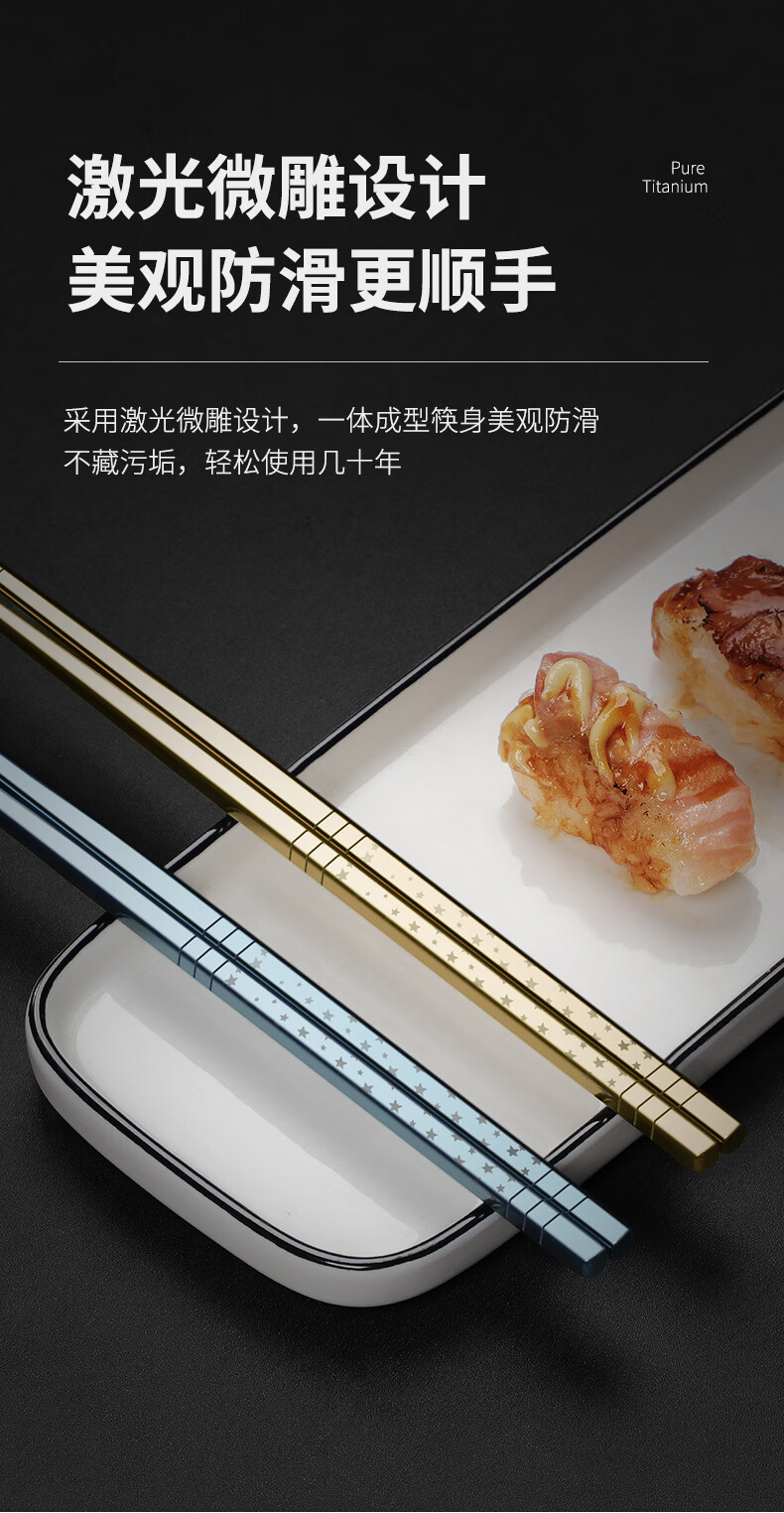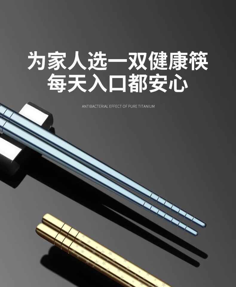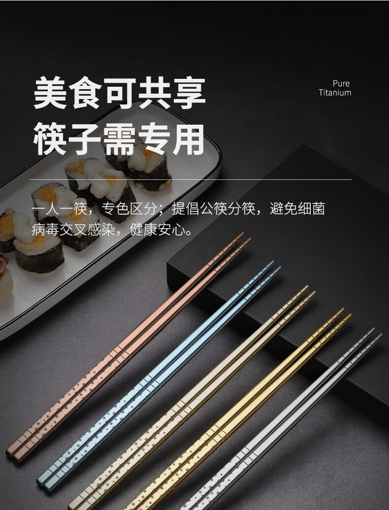 Deshanfei pure titanium chopsticks, high-end household eating tableware, titanium alloy, one person, one chopstick, meal sharing, mildew-proof, high-end chopsticks family set, starry sky spoon, 5 pairs, blue model
