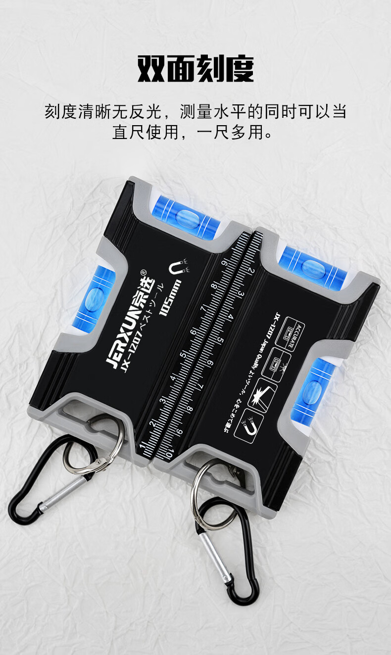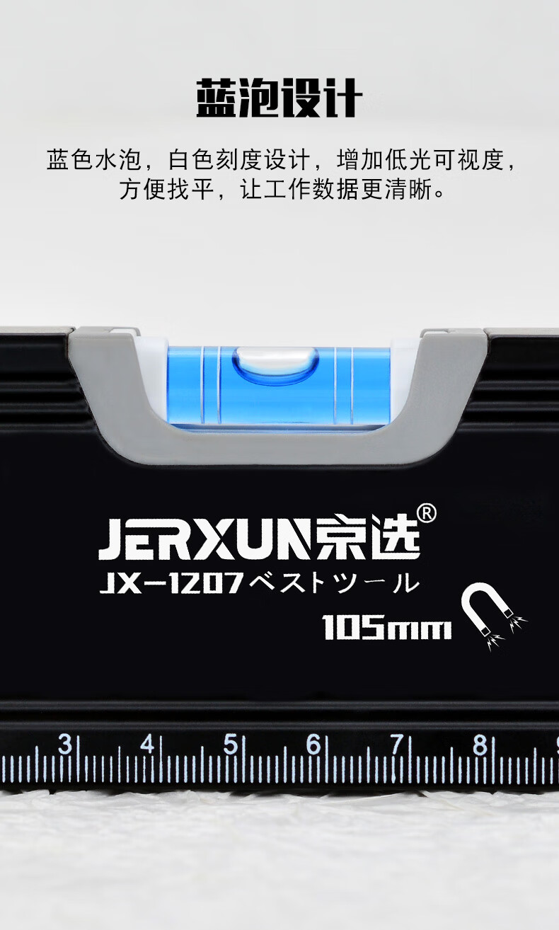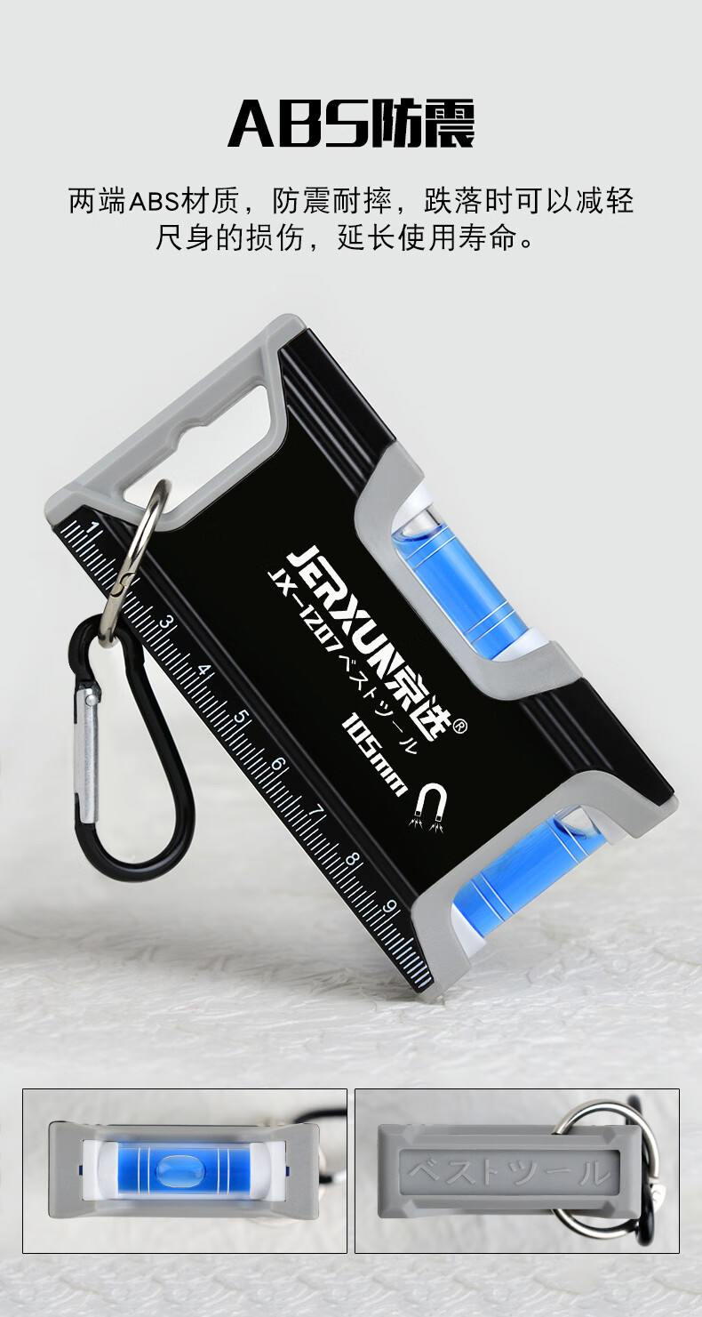JERXUN level small mini balance ruler high-precision ruler level strong magnetic household aluminum alloy measuring ruler 105mm mini level ruler