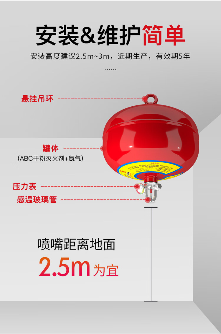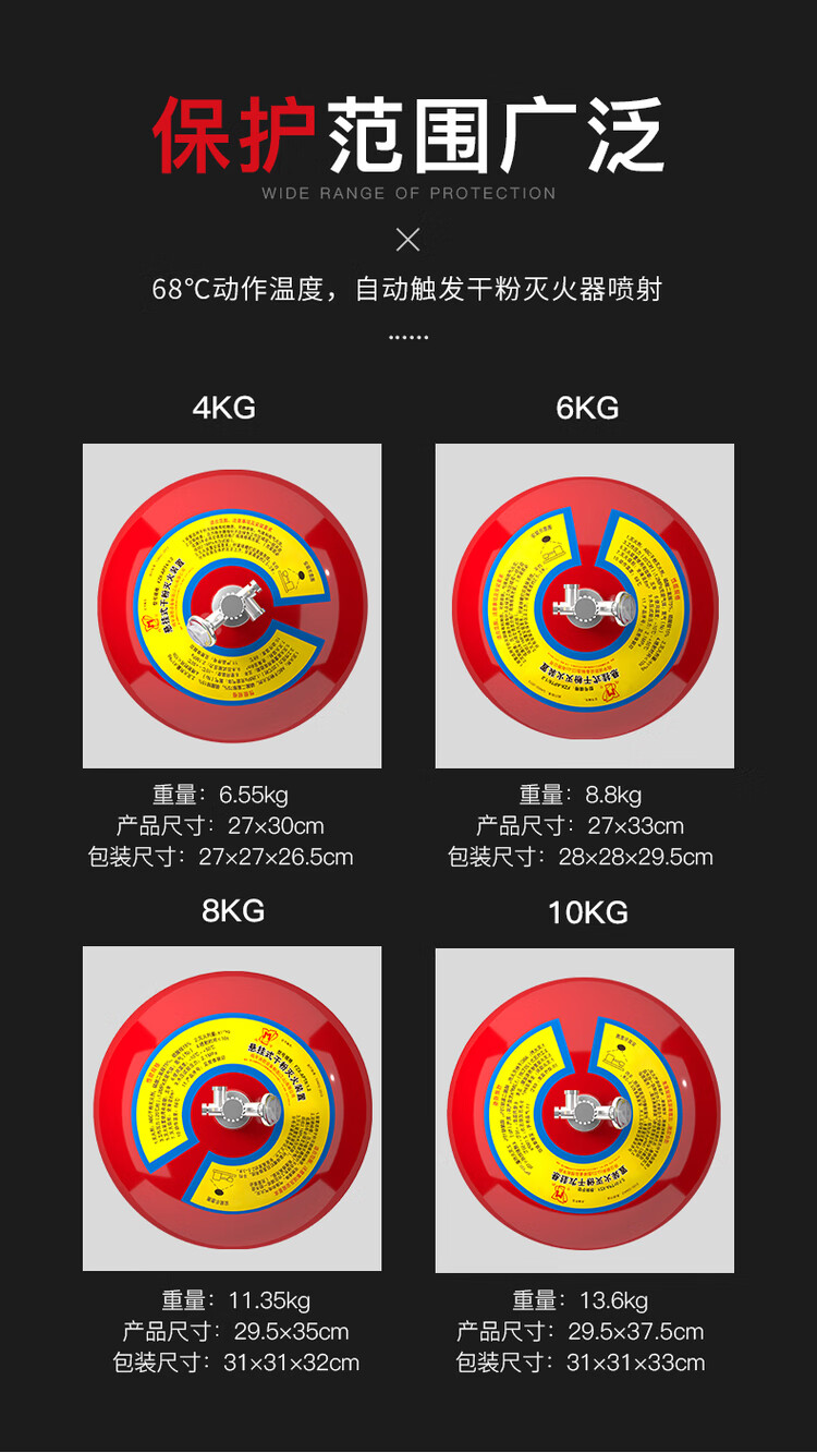 Suspended dry powder fire extinguisher 68 temperature sensing automatic fire extinguishing device 4/6/8KG hanging fire extinguishing egg ball MY4KG hanging dry powder certification