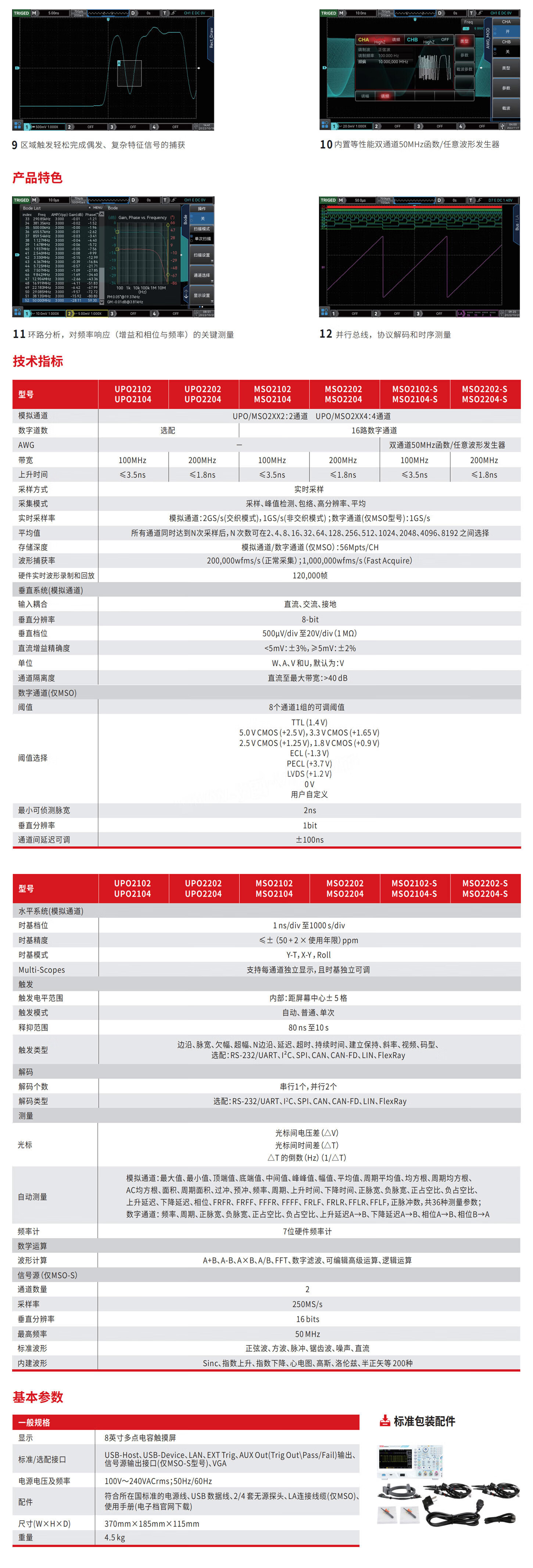Unilide UPO2204 digital fluorescence oscilloscope MSO2104-S oscilloscope 200M dual four-channel 100M signal source MSO2102-S (100M two-channel with signal source)