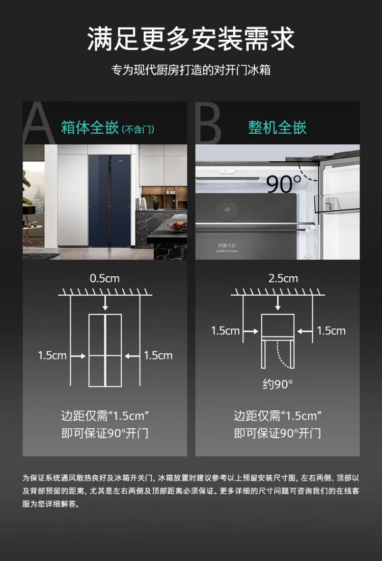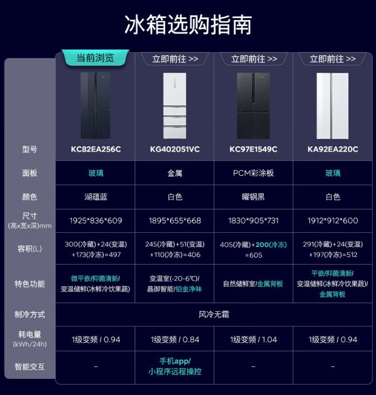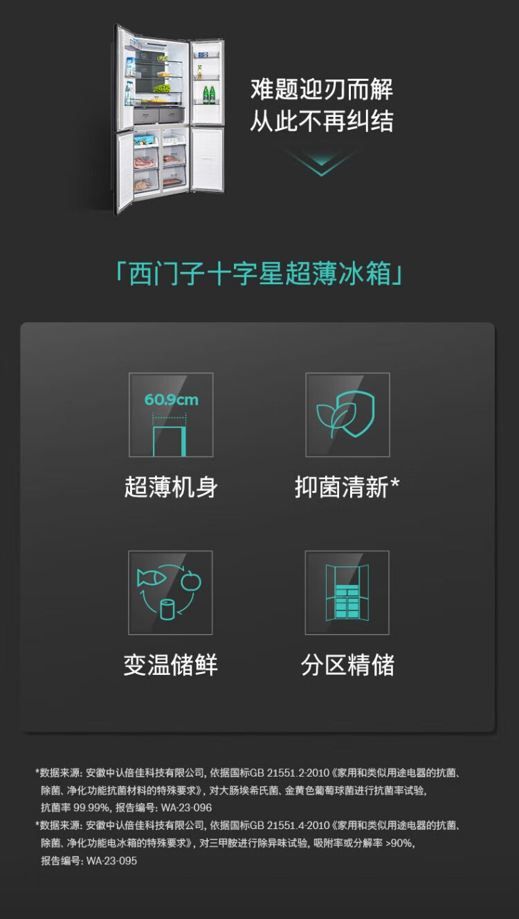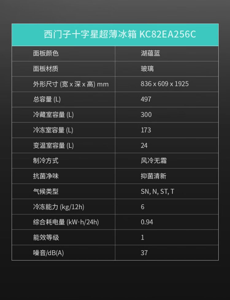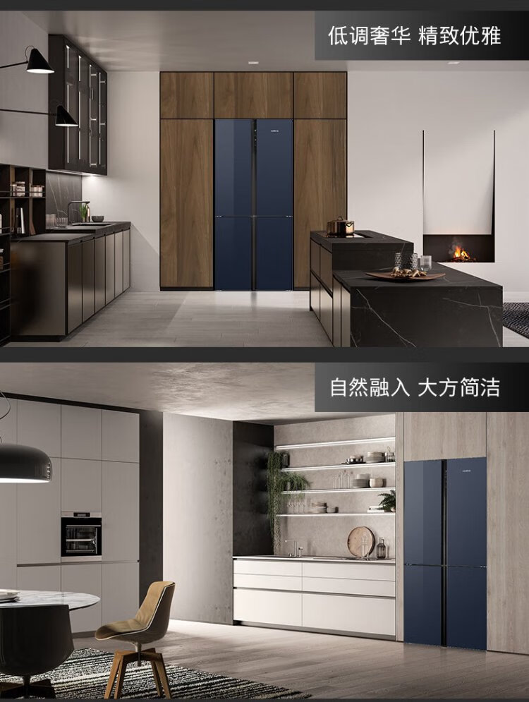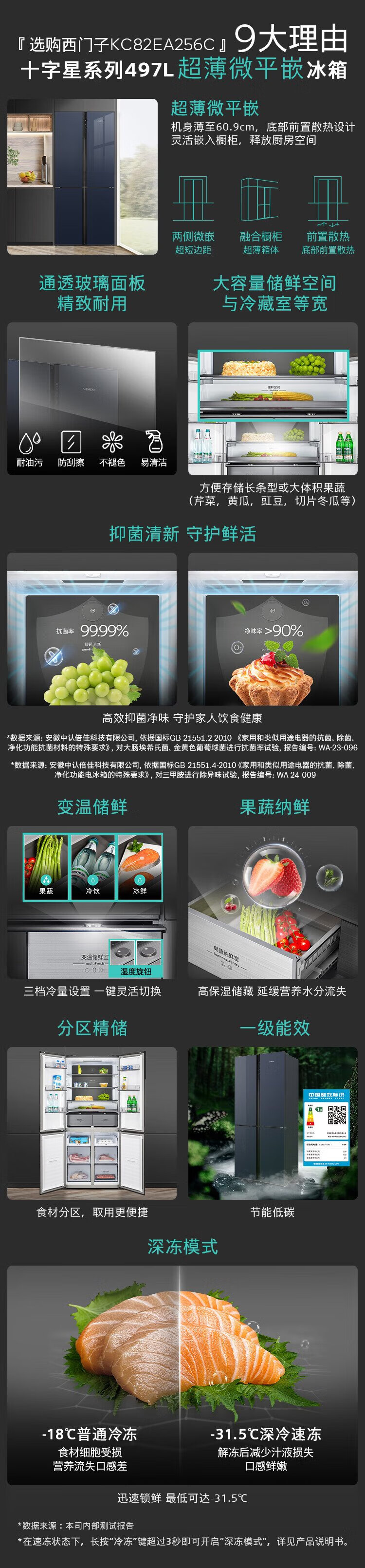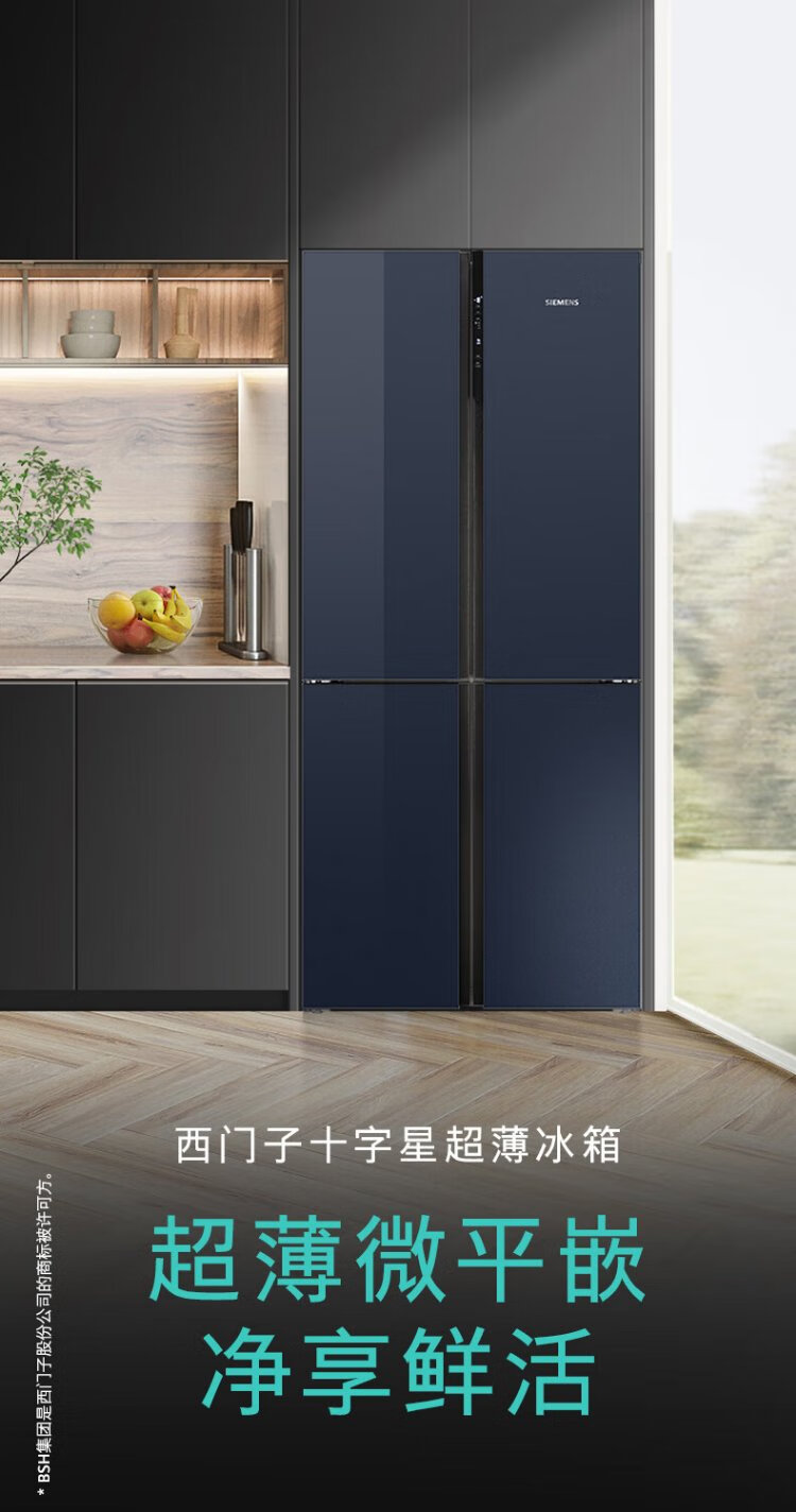 SIEMENS Cross Star series glass door 497 liters four-door cross-door inverter refrigerator 60.9cm ultra-thin body slightly flush-mounted KC82EA256C