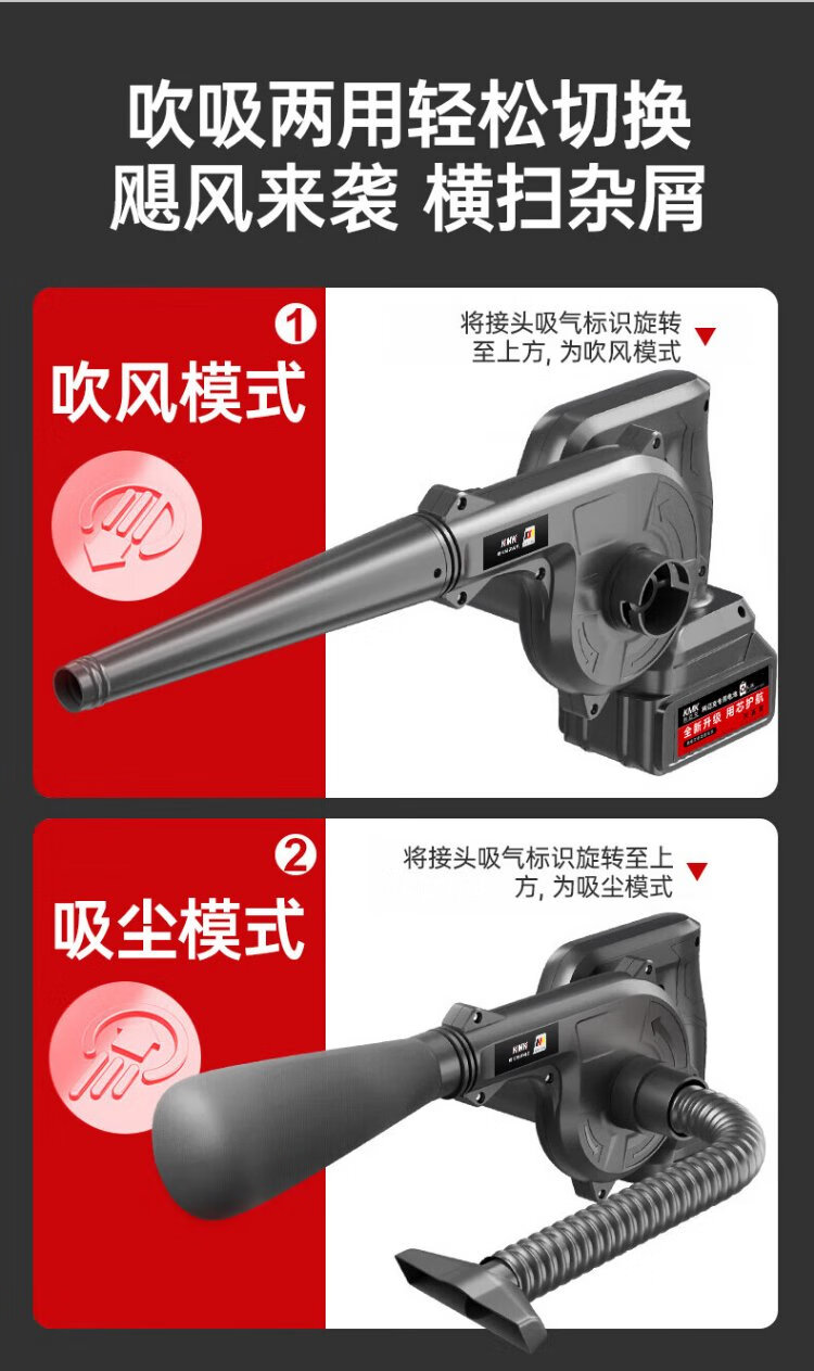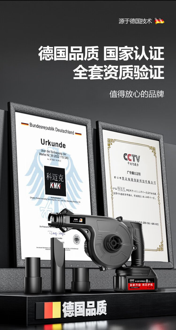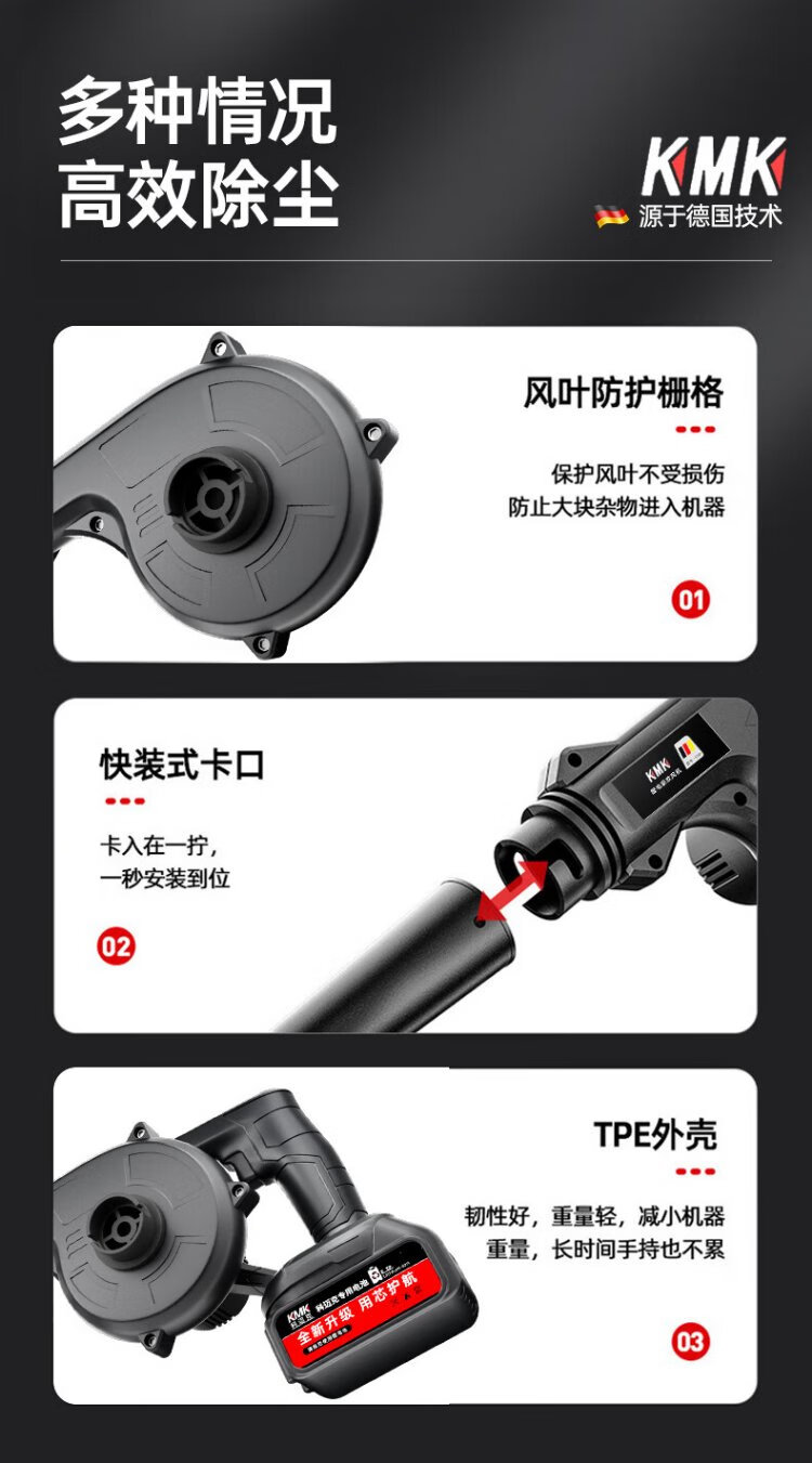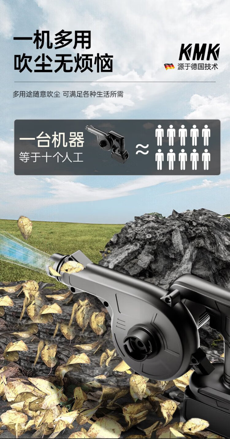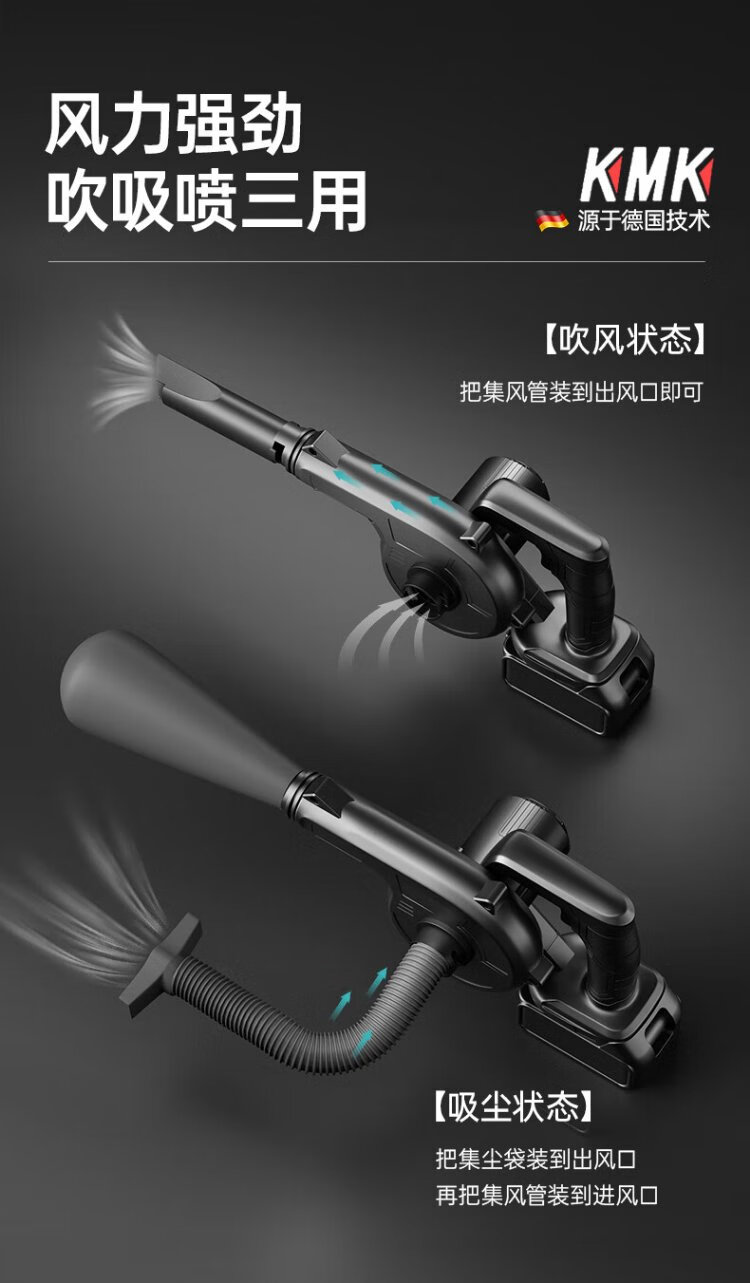 Komak German rechargeable blower lithium hair dryer blowing and sucking dual-purpose vacuum cleaner industrial home computer blowing dust industrial strong wind model 10 sections 2 electricity + high endurance set