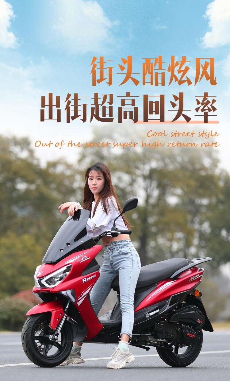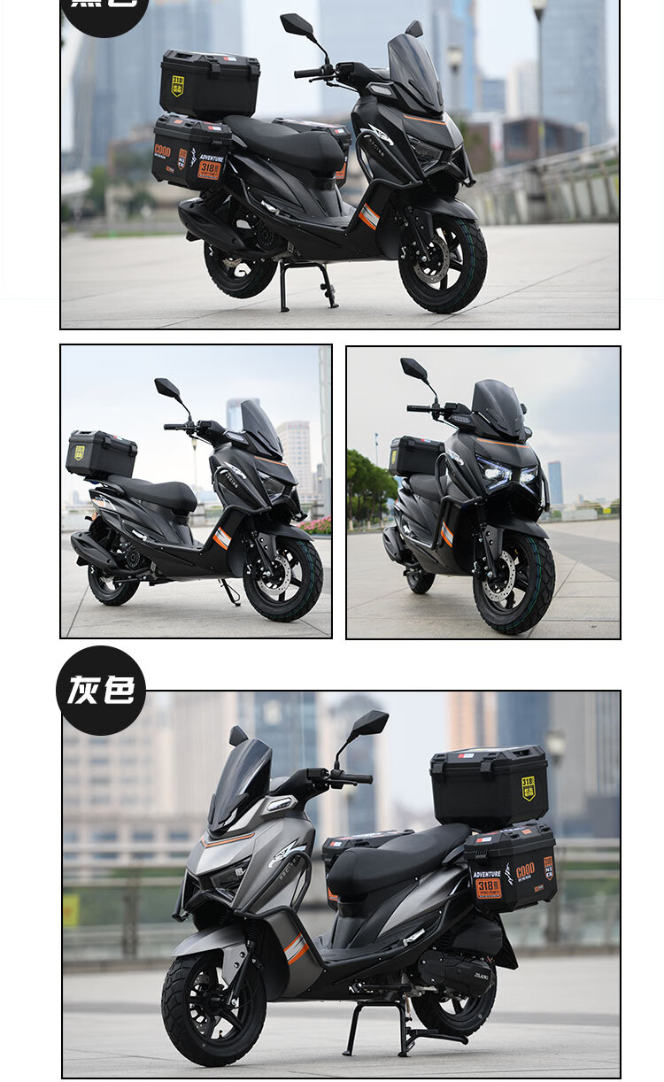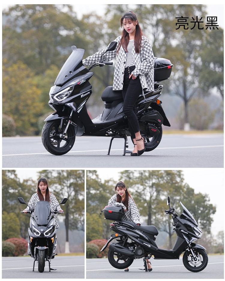 Kunhao Jilang Sabretooth Tiger new scooter 150cc fuel vehicle men's and women's scooter matte black rimless case (Handa machine) + guardrail