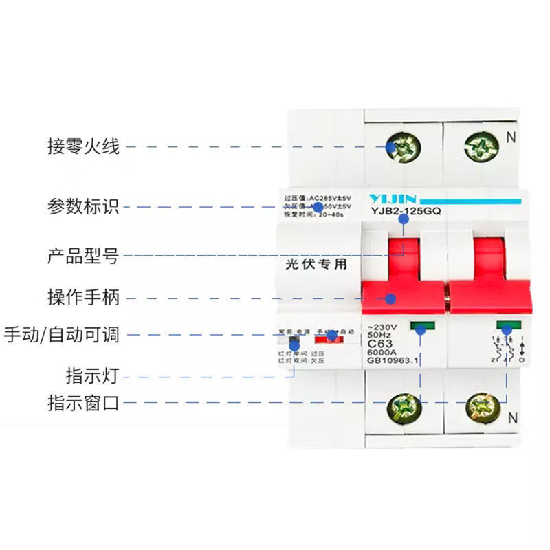 Yijin YJB2-125GQ/4P100A photovoltaic power generation grid-connected automatic reclosing switch over- and under-voltage protector 125A 4P
