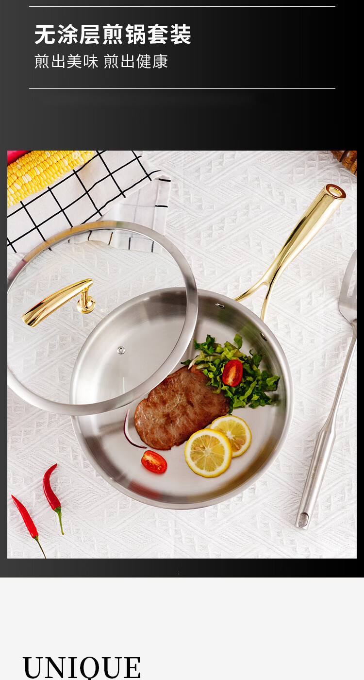 Mrs. Fei German 316 stainless steel pot set complete set of home kitchen steamer food pan frying wok milk pot pan B3 wok + frying pan + steamer 3-piece set