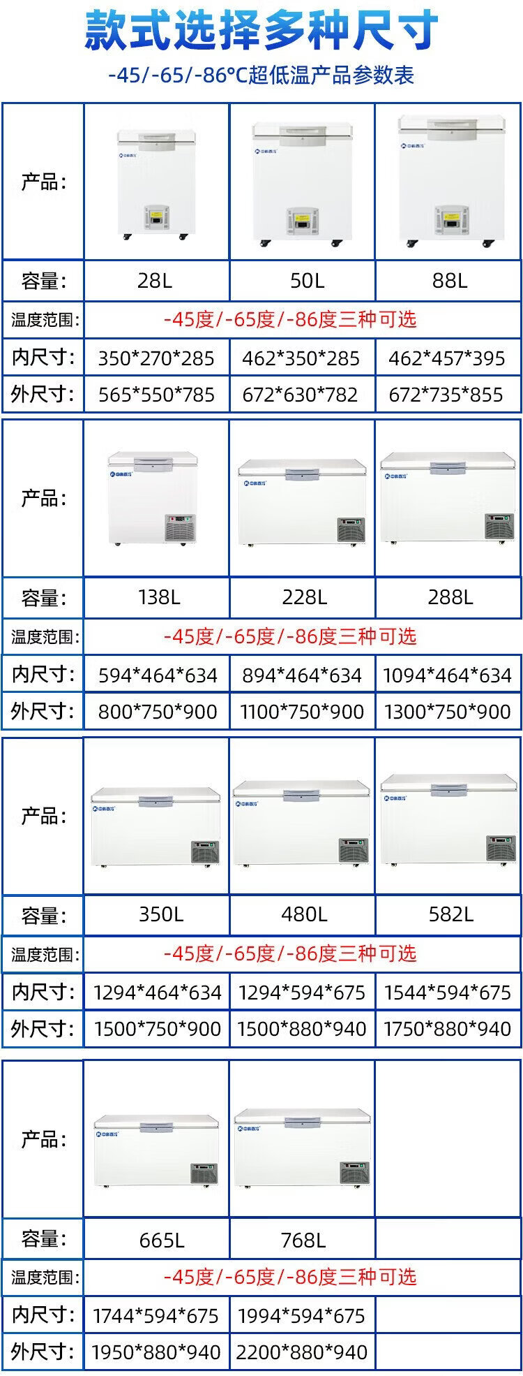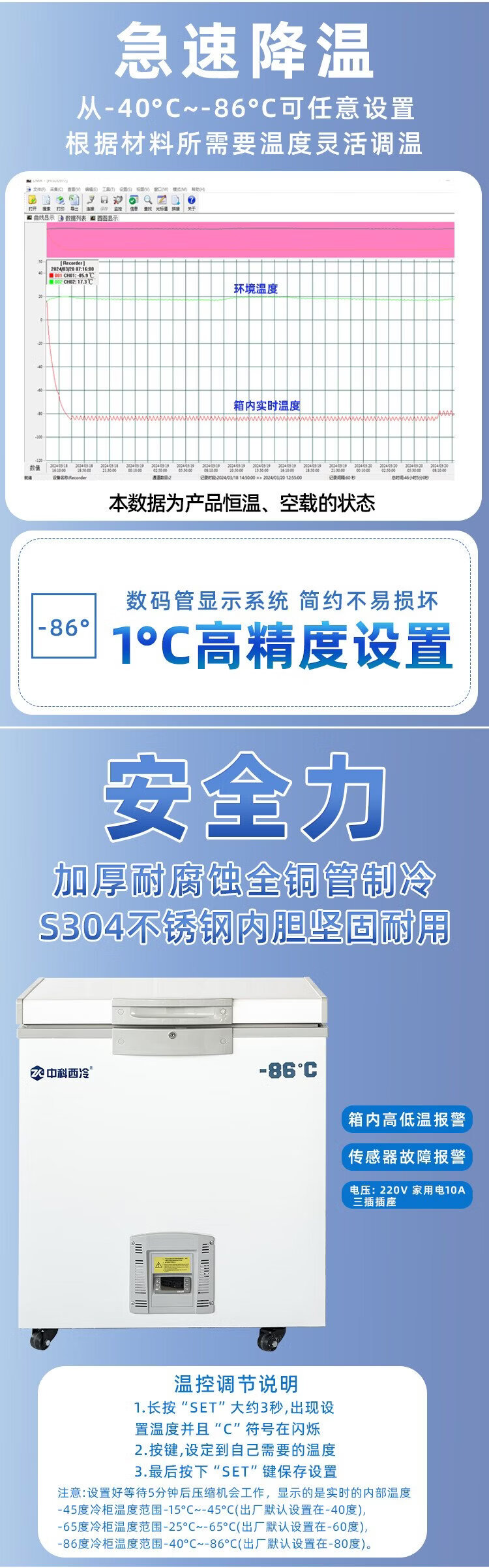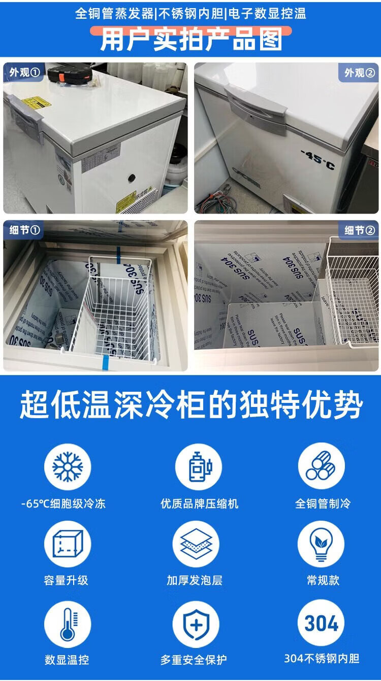Zhongke Xileng ultra-low temperature refrigerator - 80 degrees small laboratory scientific research - 60 biological dry ice strain reagent freezer - minus 40 industrial parts cryogenic storage refrigeration quick freezer - 25~-65 C ultra-low temperature 228 liters