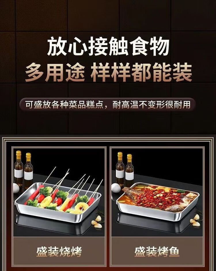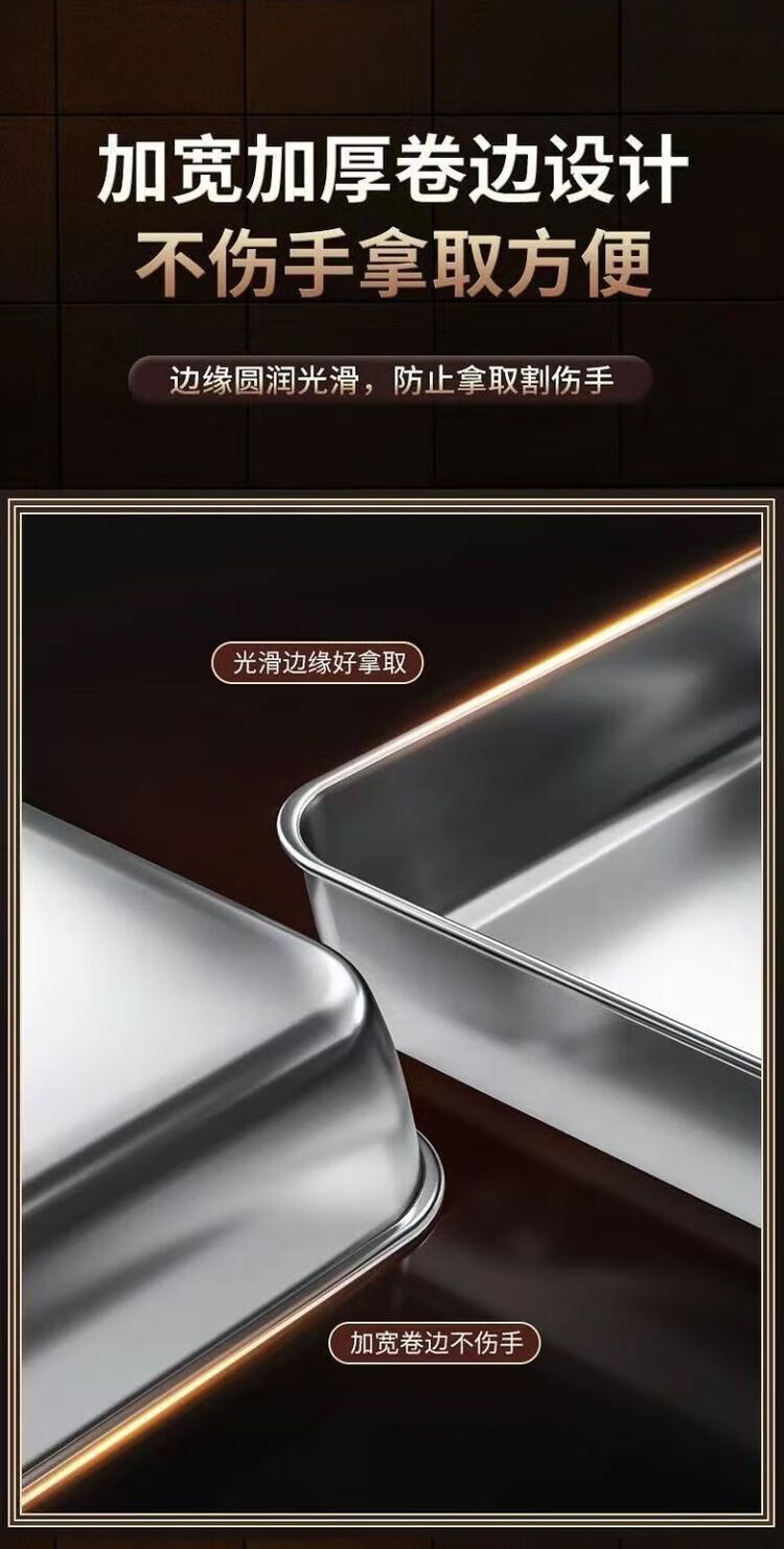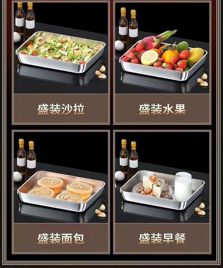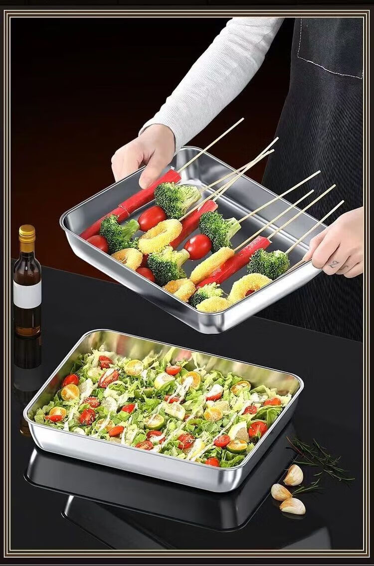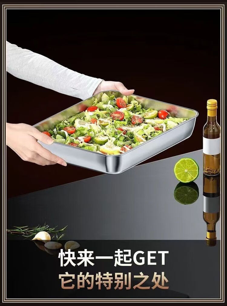 Baishengniu thickened 316 stainless steel food-grade square plate cold dish tray steamed cake tray commercial multi-purpose plate flat bottom square basin 1L 1 pack length 31 width 24 height 5.5cm 316 stainless steel material
