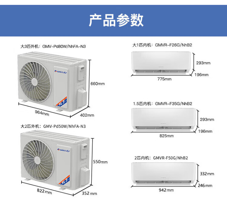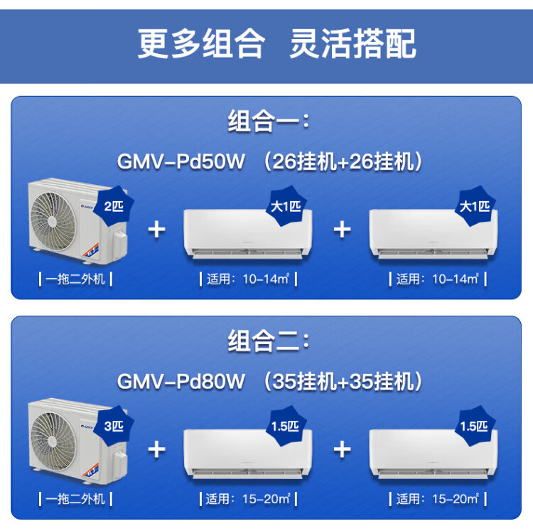 Gree (GREE) one-to-three one-to-two central air conditioner 2 HP large 3 HP wall-mounted household DC variable frequency heating and cooling multi-split commercial apartment Free series large 3 HP one to three 1 HP + 1 HP + 1.5 HP including installation