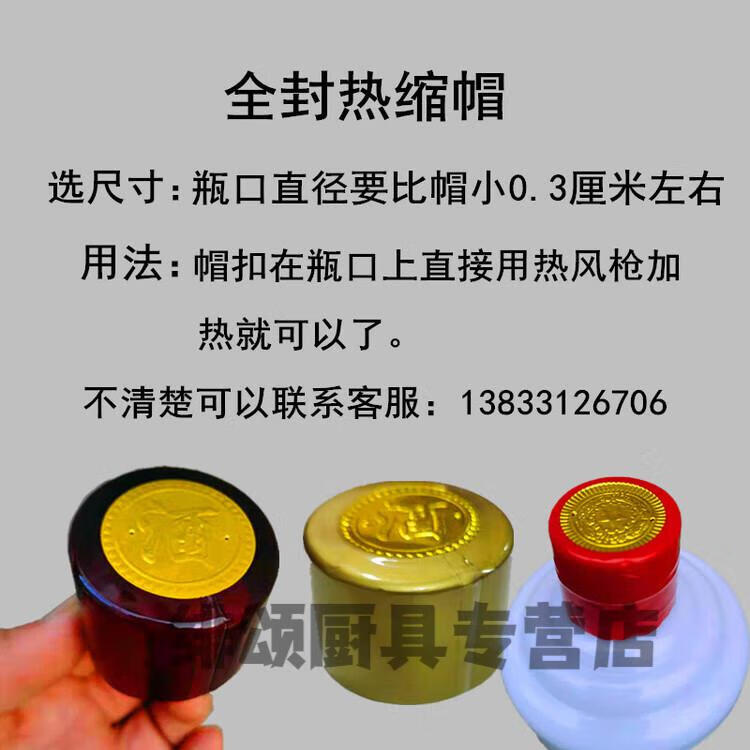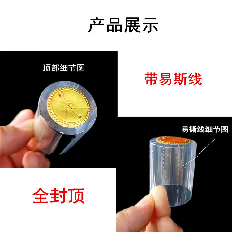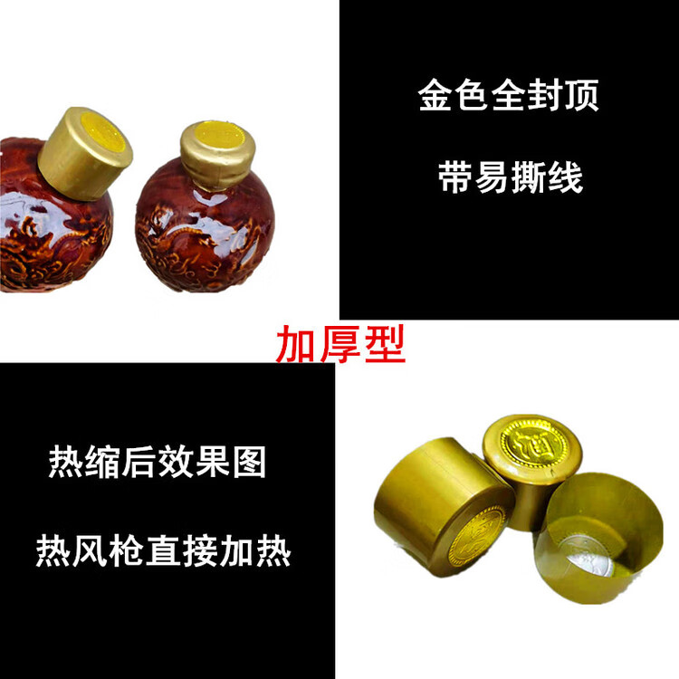 Xiaojiangshi wine bottle mouth sealing heat shrink cap PVC color heat shrink cap wine bottle mouth sealing heat shrink film altar mouth heat sealing film glass transparent gold top diameter 3.1 height 4cm 50 pieces suitable