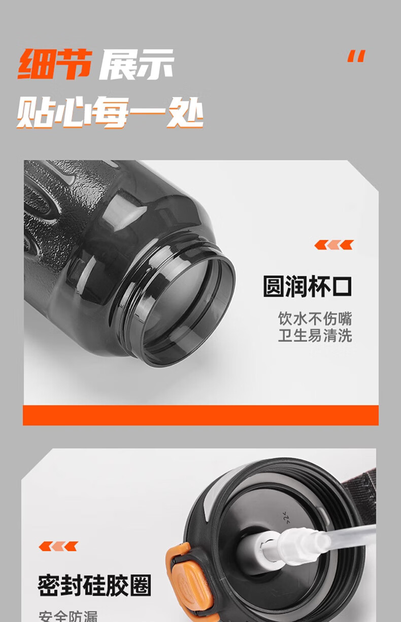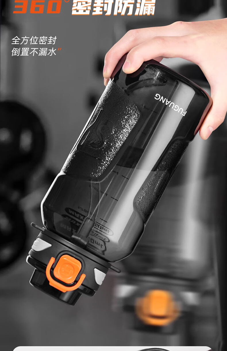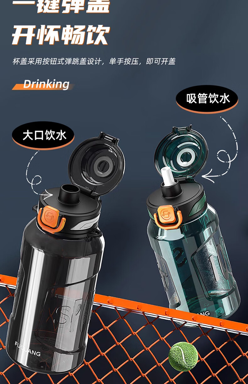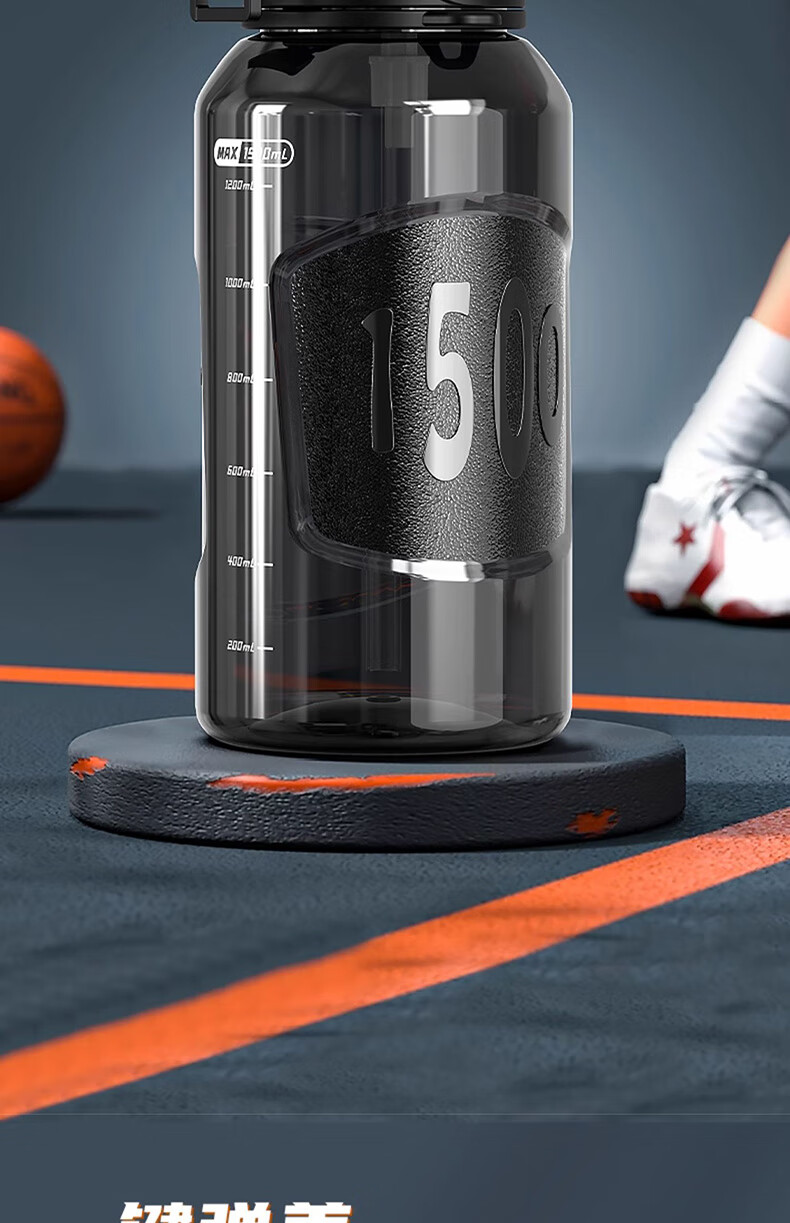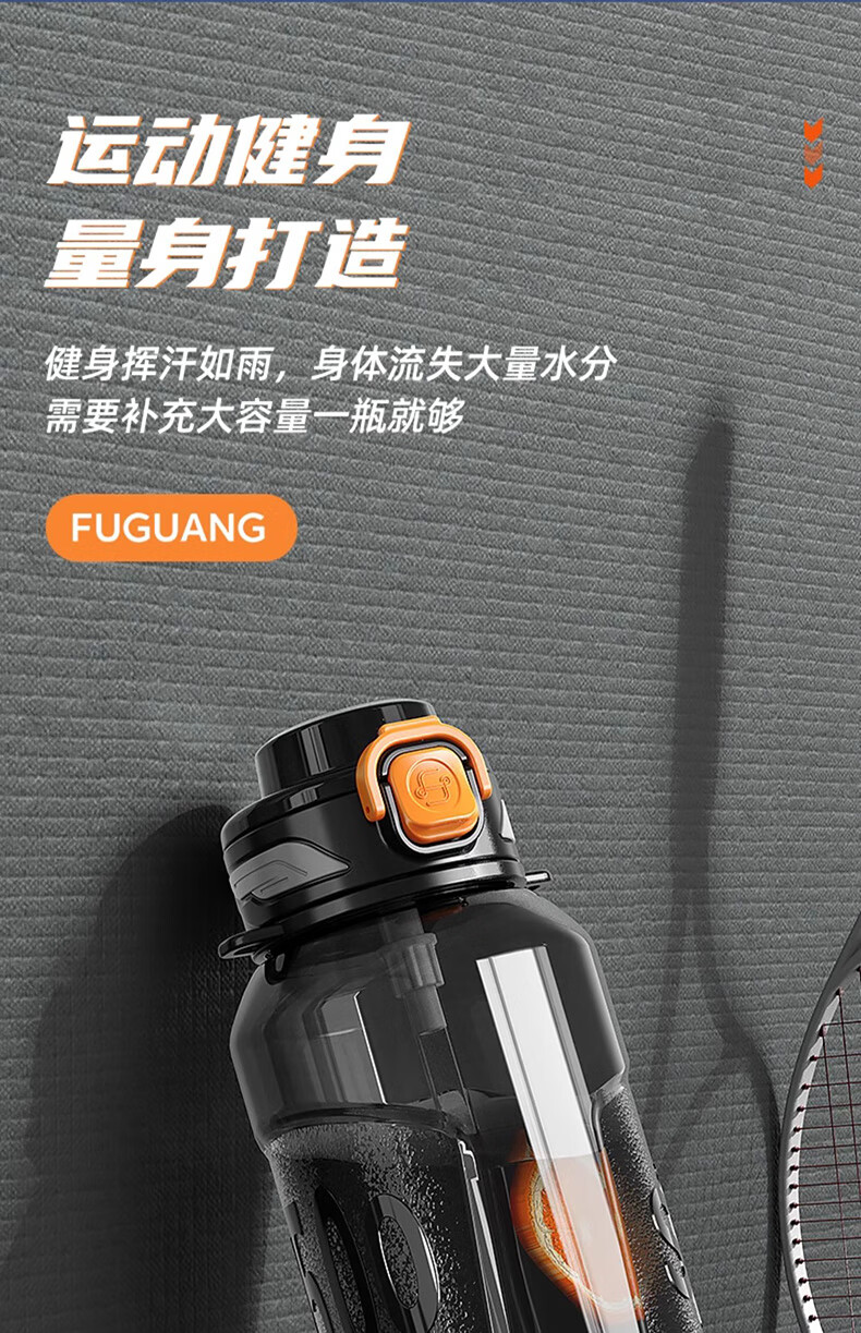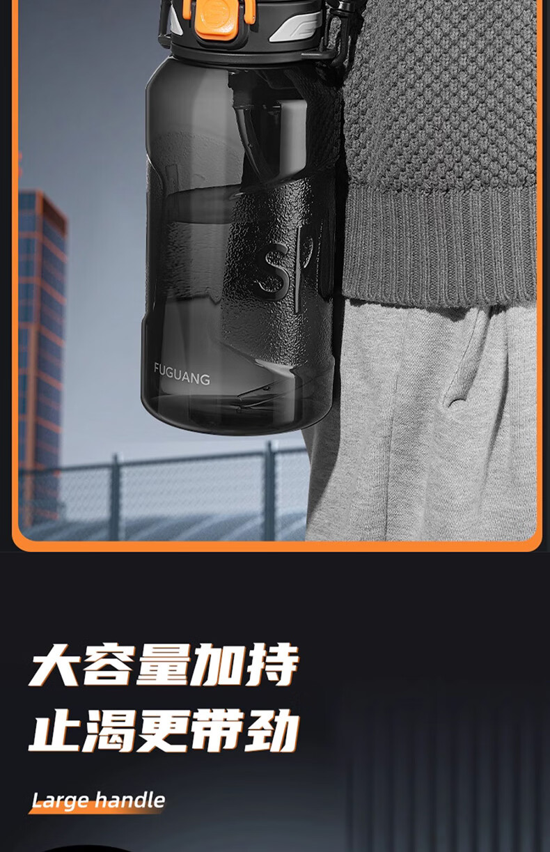 Fuguang Large Capacity Sports and Fitness Water Cup for Boys Summer High Temperature Resistant Space Cup Ton Bucket Ton Kettle Plastic Water Bottle Dark Black Strap + Rope + Straw 1.5L