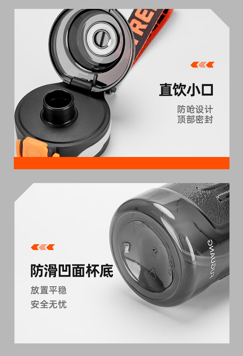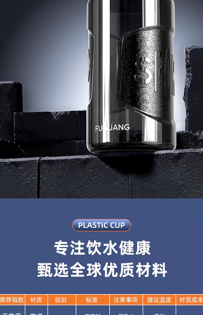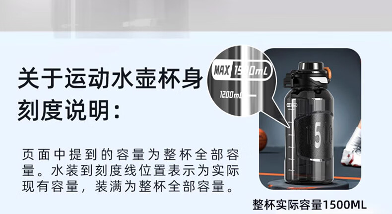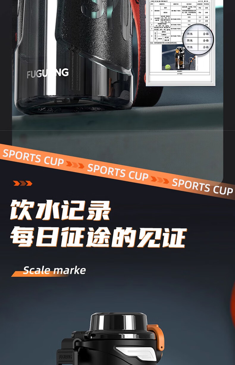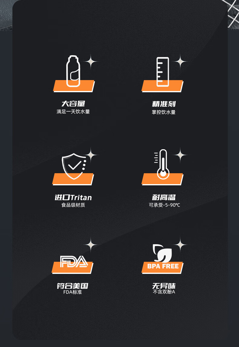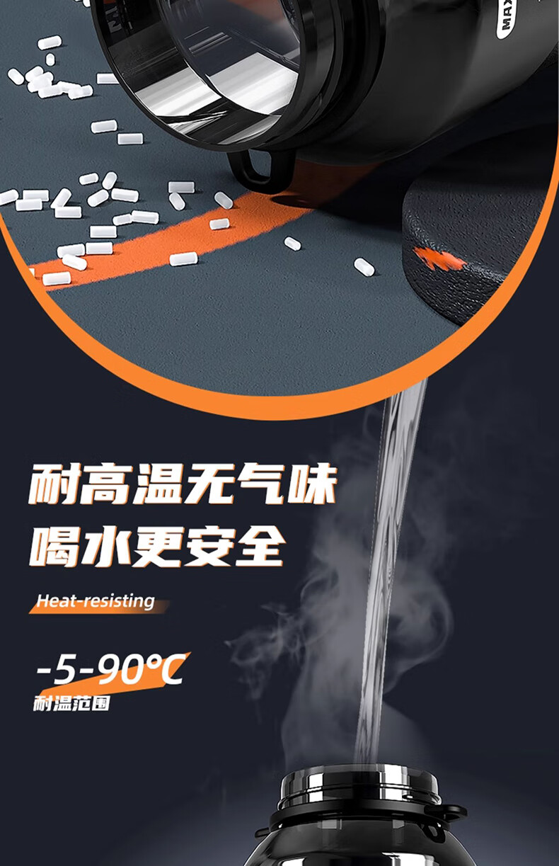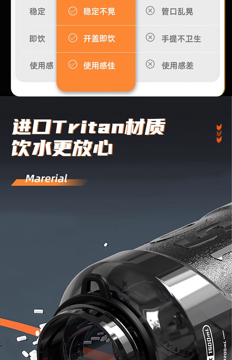 Fuguang Large Capacity Sports and Fitness Water Cup for Boys Summer High Temperature Resistant Space Cup Ton Bucket Ton Kettle Plastic Water Bottle Dark Black Strap + Rope + Straw 1.5L
