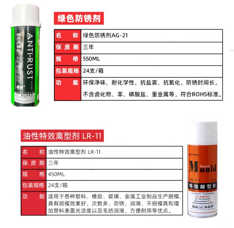 High-efficiency silver crystal release agent release agent mold cleaning agent ejector lubricant OZ60 green and white transparent anti-rust oil silver crystal ejector lubricant LT-16 24 bottles