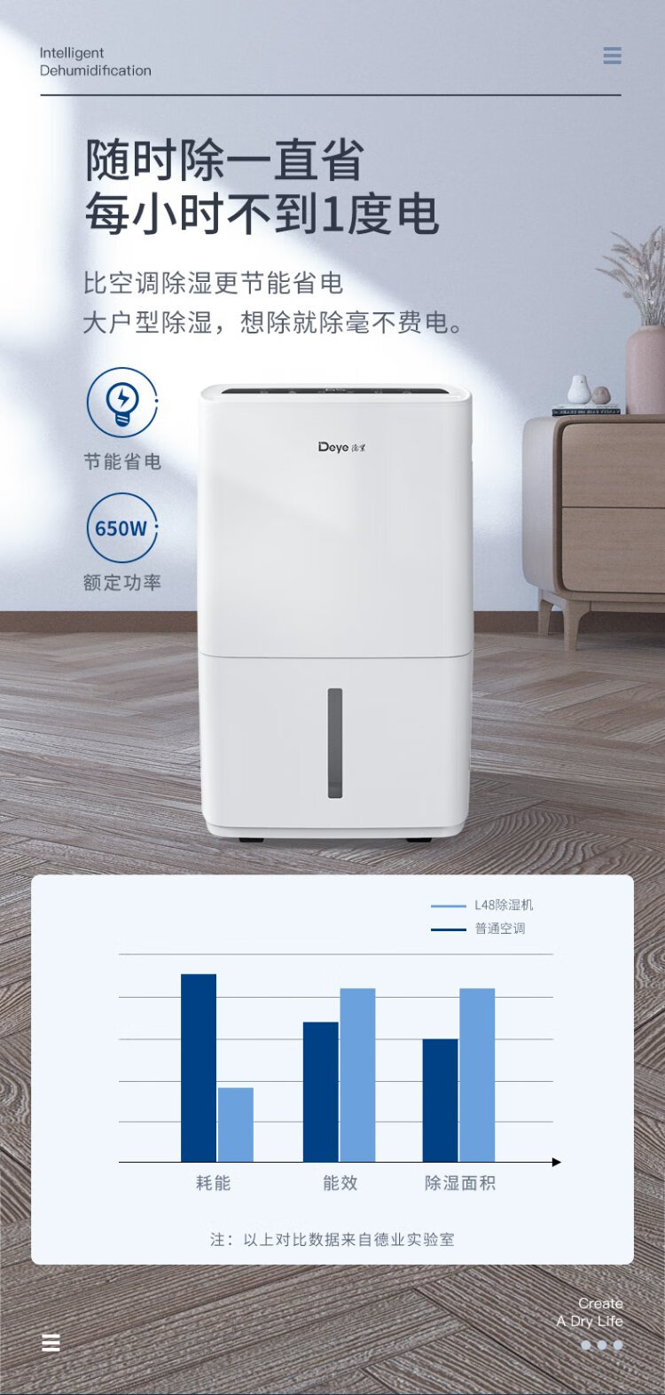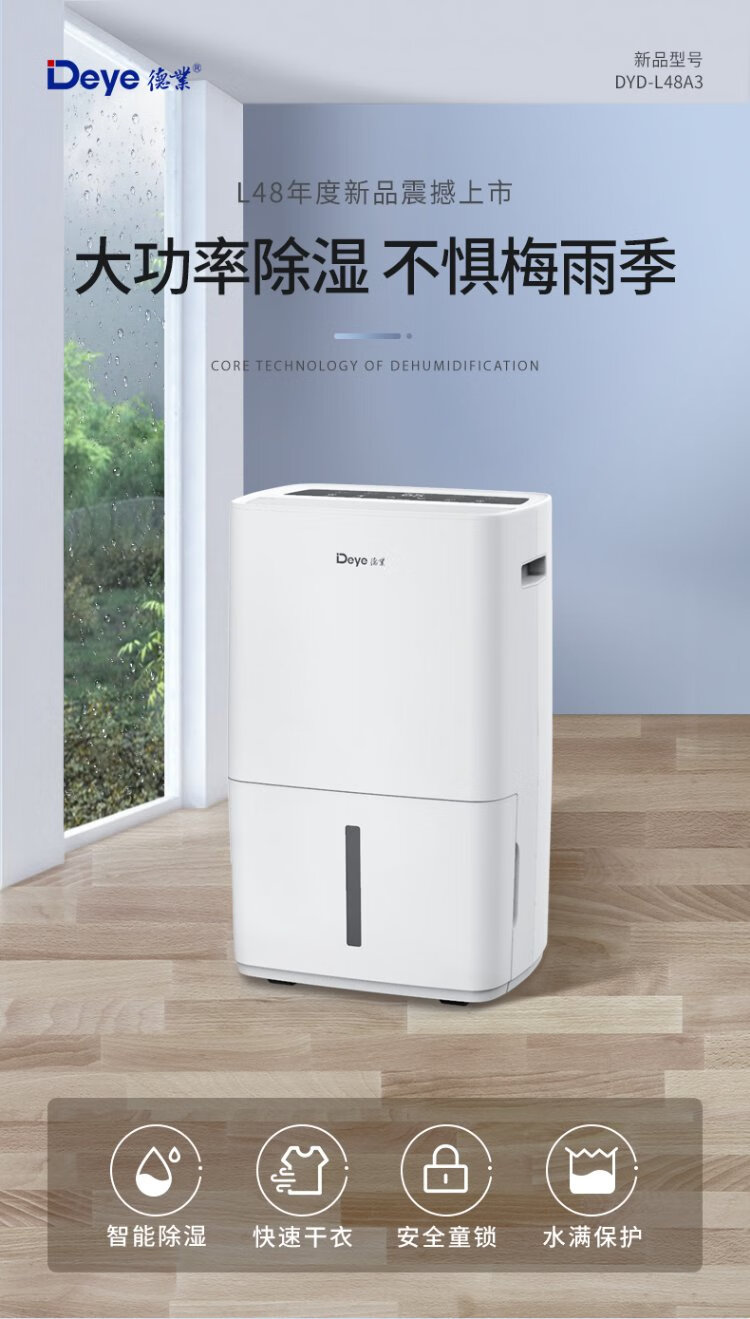 Deye flagship model Deye dehumidifier dehumidifier dehumidification capacity 48 liters household basement duplex villa commercial industrial moisture absorber L48A3 48L/day DYD-L48A3