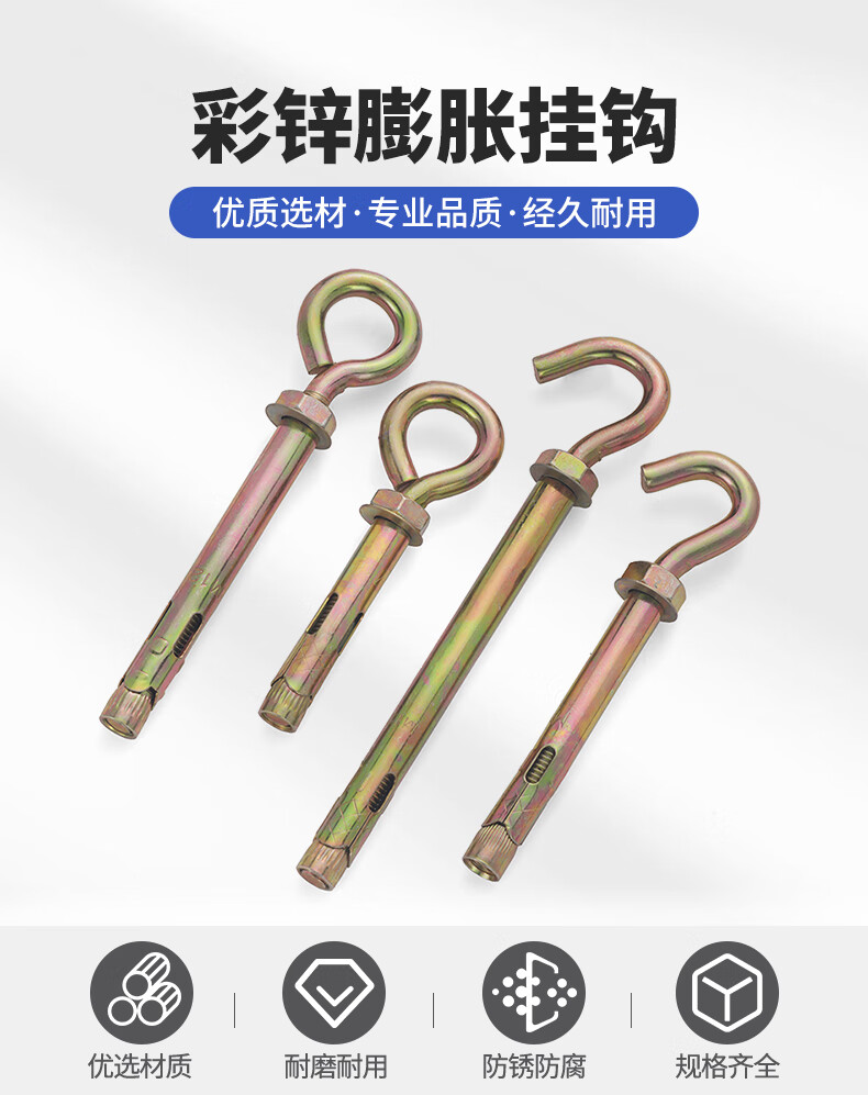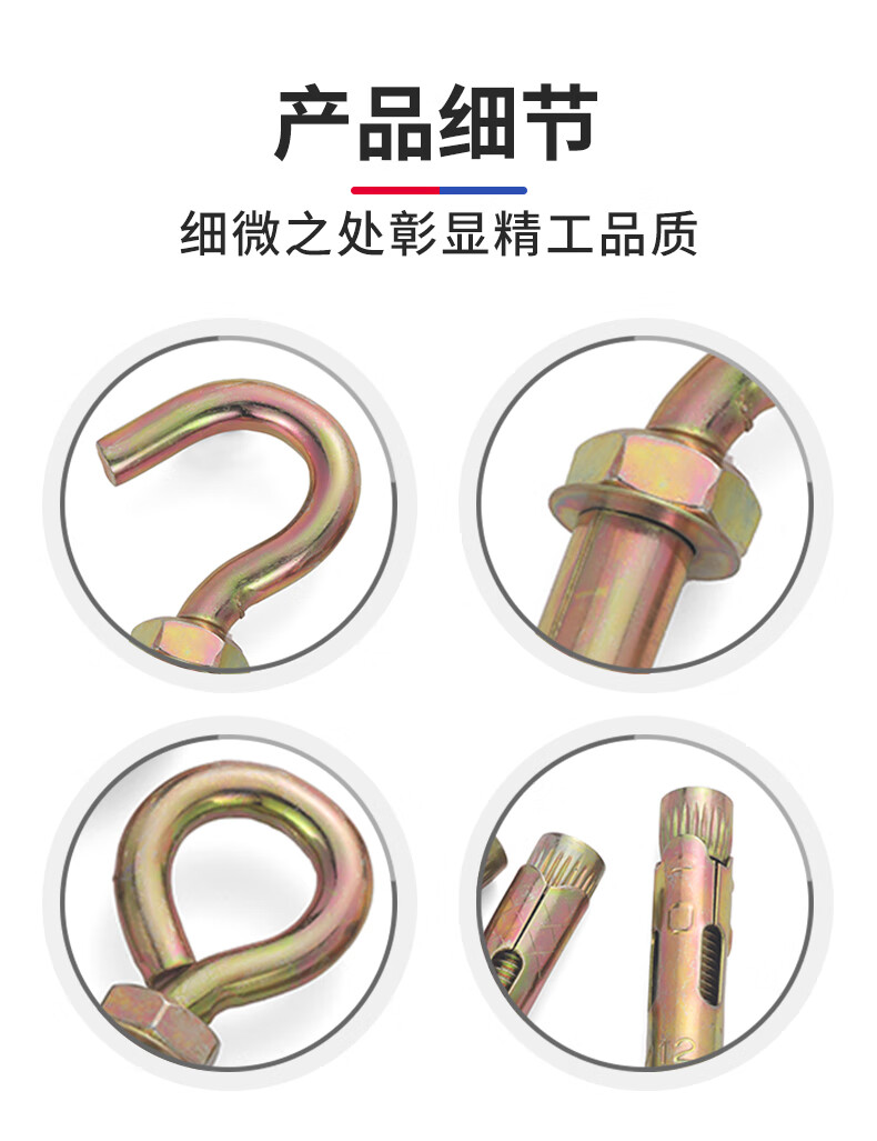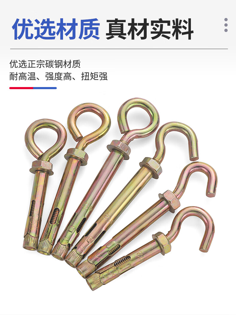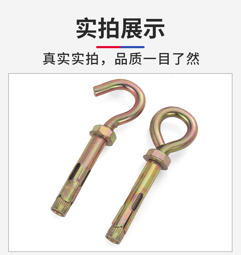 Jinggong (JINGGONG) galvanized expansion screw hook lengthened expansion hook lifting ring pop-up bolt with ring hook hook M6M8M10M12 hook type M8*120 (2 pieces)