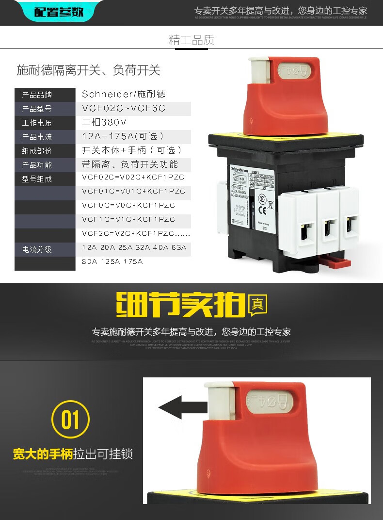 Original Schneider Electric V series Vario load switch isolation switch 3P three-phase three-wire 3 in 3 out handle can be padlocked 12A-175A VCF4C 80A body + handle