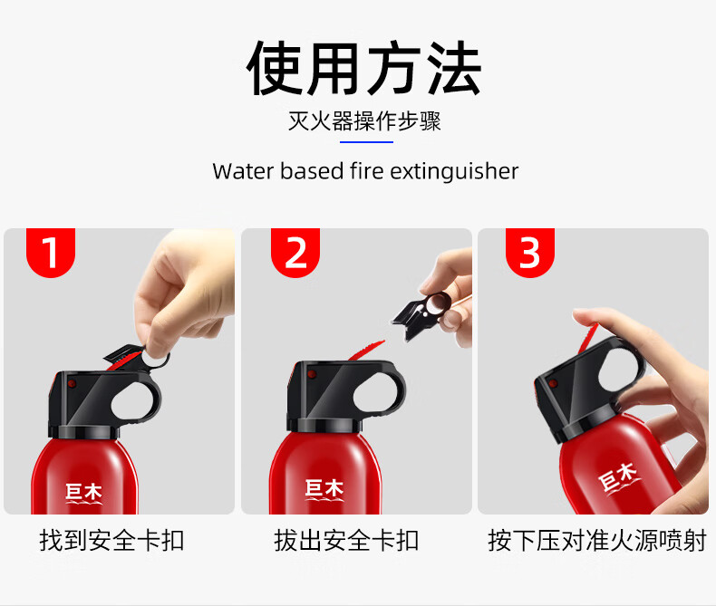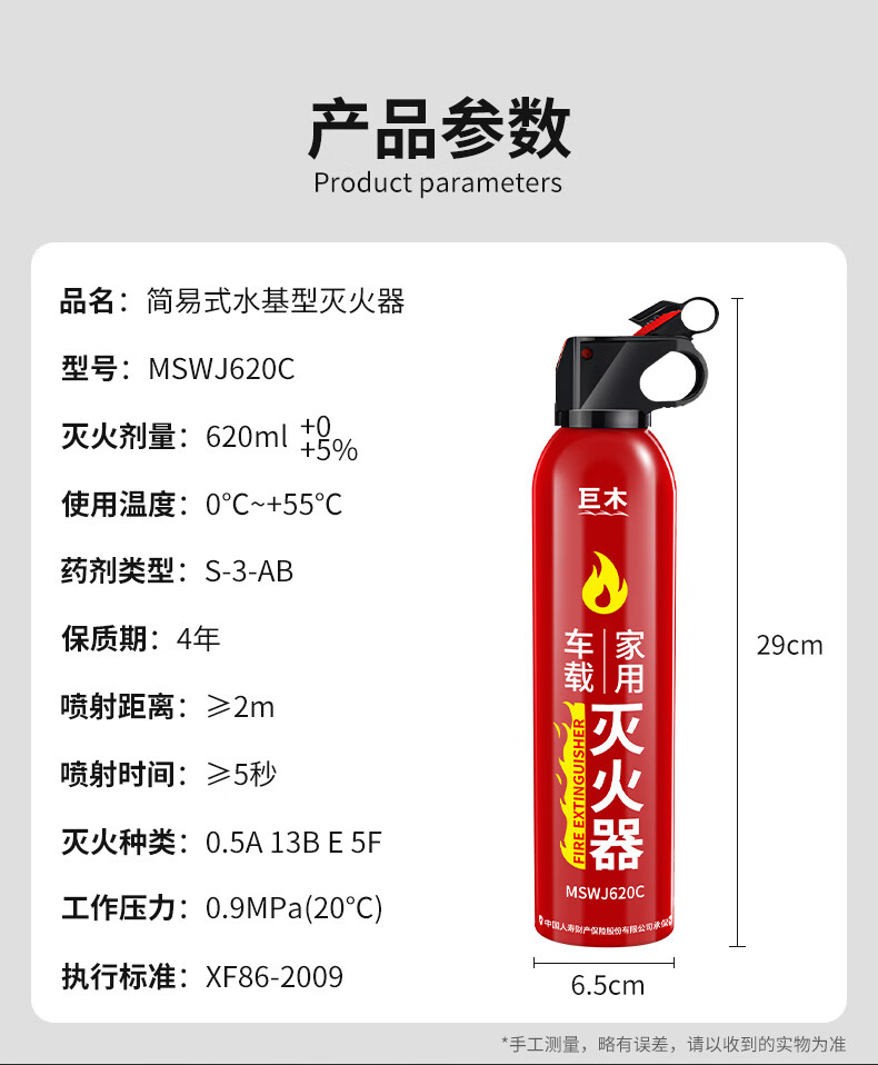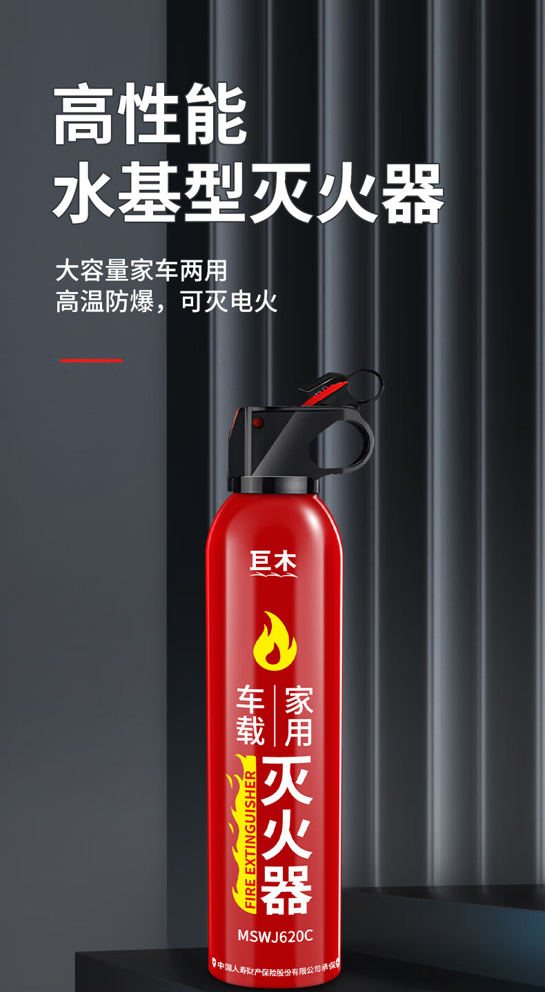 Jumu vehicle-mounted water-based fire extinguisher, private car, car annual inspection, portable fire extinguishing bottle, household small fire-fighting equipment 620ml water-based + fixed belt + fixed frame