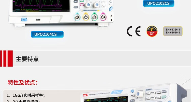 UNI-T UPO2102CS digital fluorescence oscilloscope 100MHz dual channel
