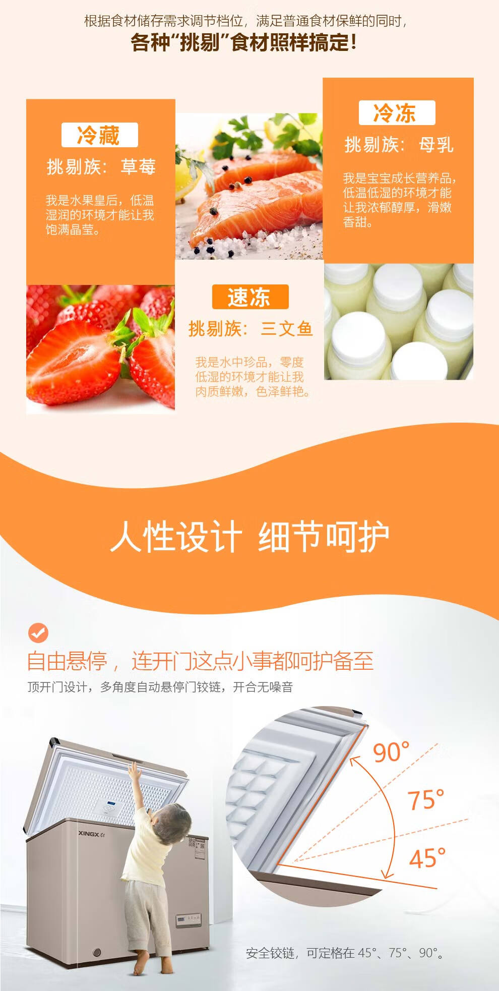 Xingx (XINGX) freezer for home use - 30 small micro-frost breast milk preservation refrigeration and freezing single temperature large capacity first-class energy efficiency energy-saving freezer deep-freezing quick-freezing refrigerator gold electric control board 103L can store 120 kilograms of meat