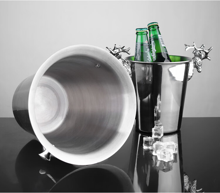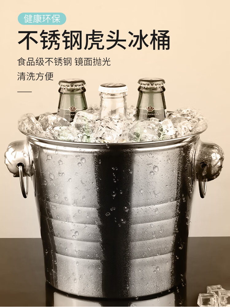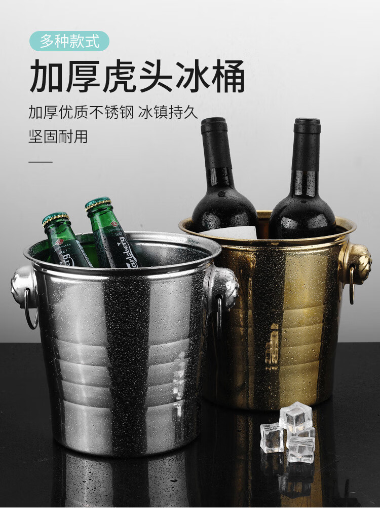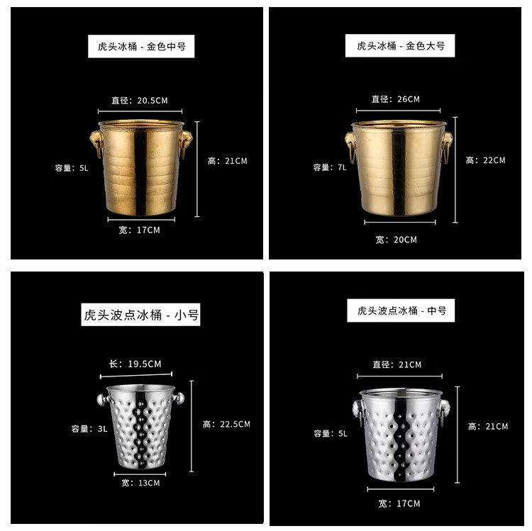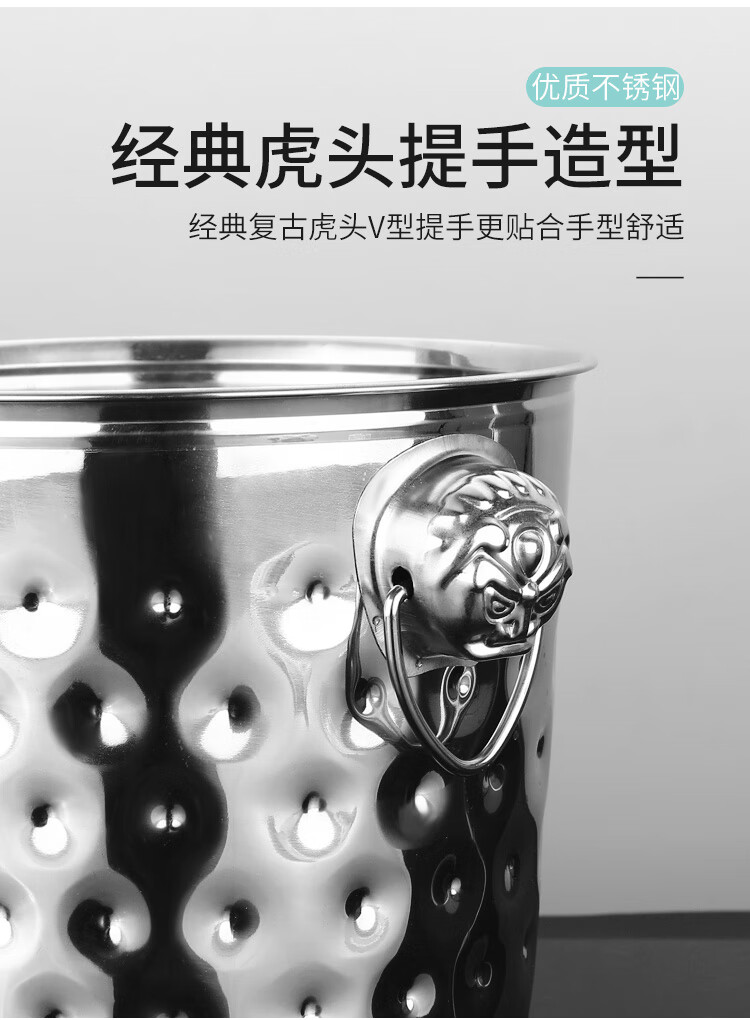 Mofan stainless steel tiger head ice bucket KTV bar ice bucket champagne bucket commercial special beer and red wine ice bucket (tiger head ice bucket) silver large 7L (ice clip)