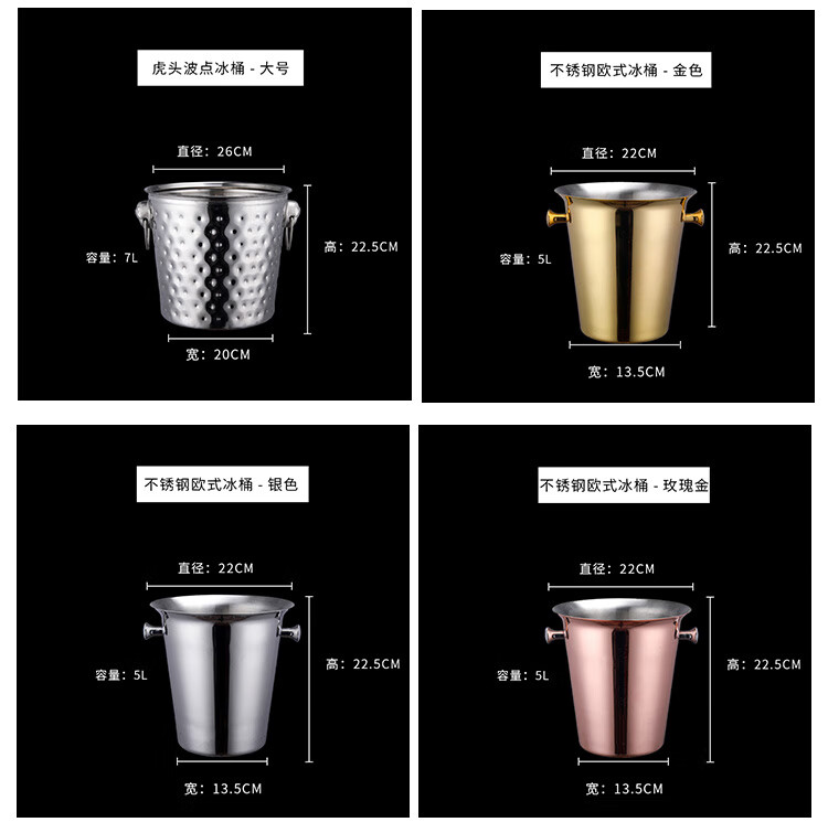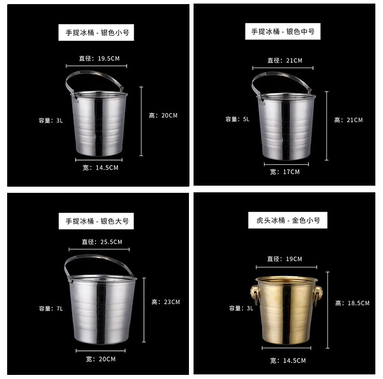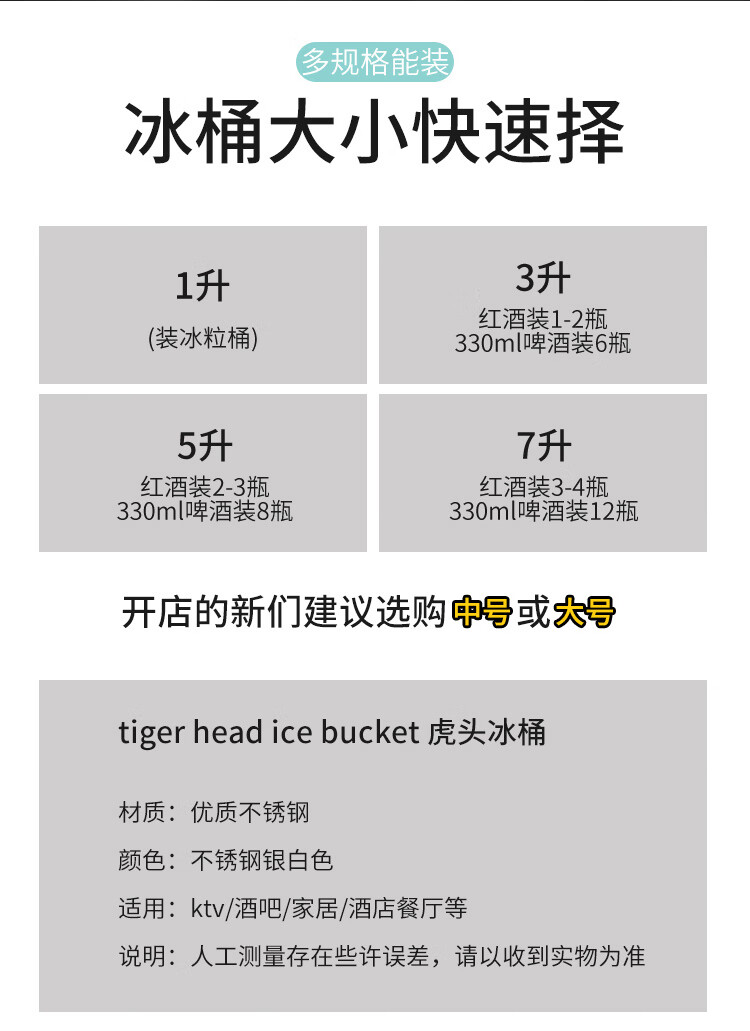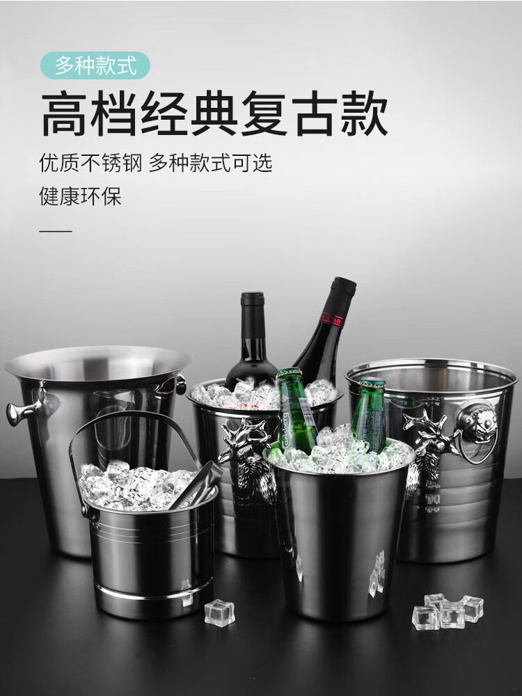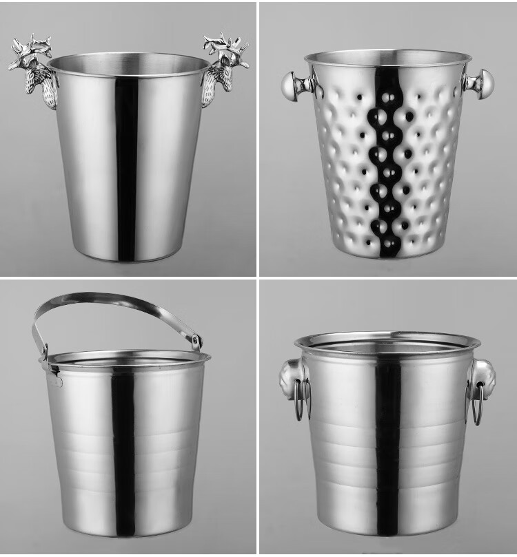 Mofan stainless steel tiger head ice bucket KTV bar ice bucket champagne bucket commercial special beer and red wine ice bucket (tiger head ice bucket) silver large 7L (ice clip)