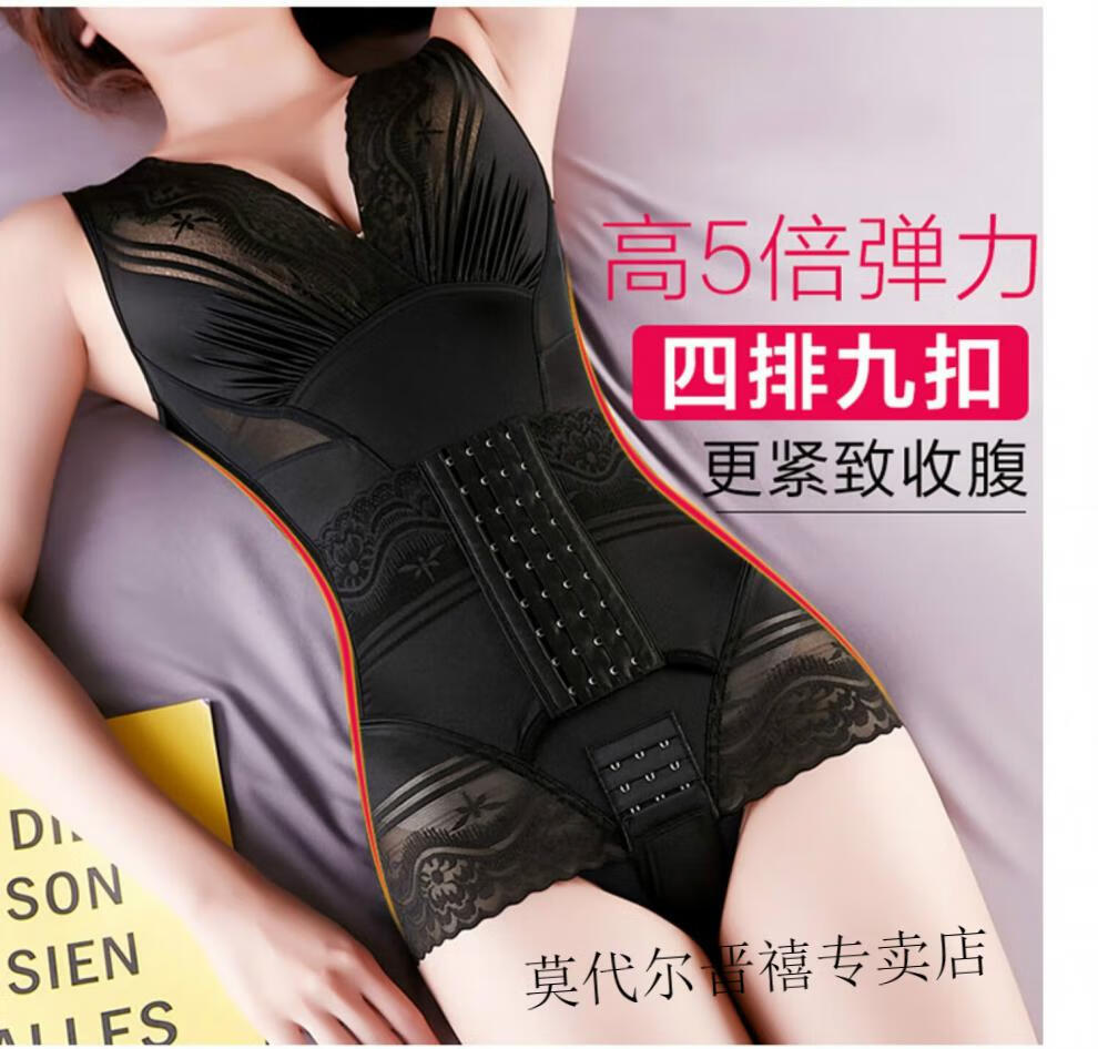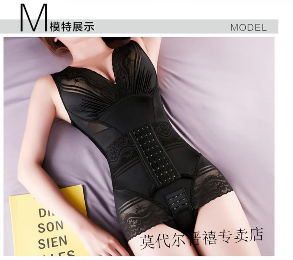 Modal tight-fitting body-shaping garment for women's body shaping, postpartum tummy-tightening, waist-lifting, butt-lifting, seamless one-piece corset, thin, black (3-corner crotch-breasted) S Recommended weight 80-90 pounds