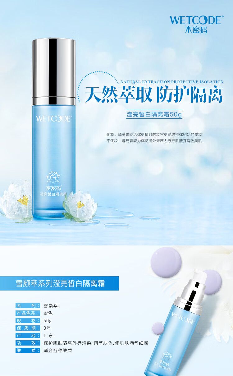 Water Code Flagship Direct Selling Bright White Isolation Cream Purple Self-Tanning Waterproof Concealer 1 Bottle