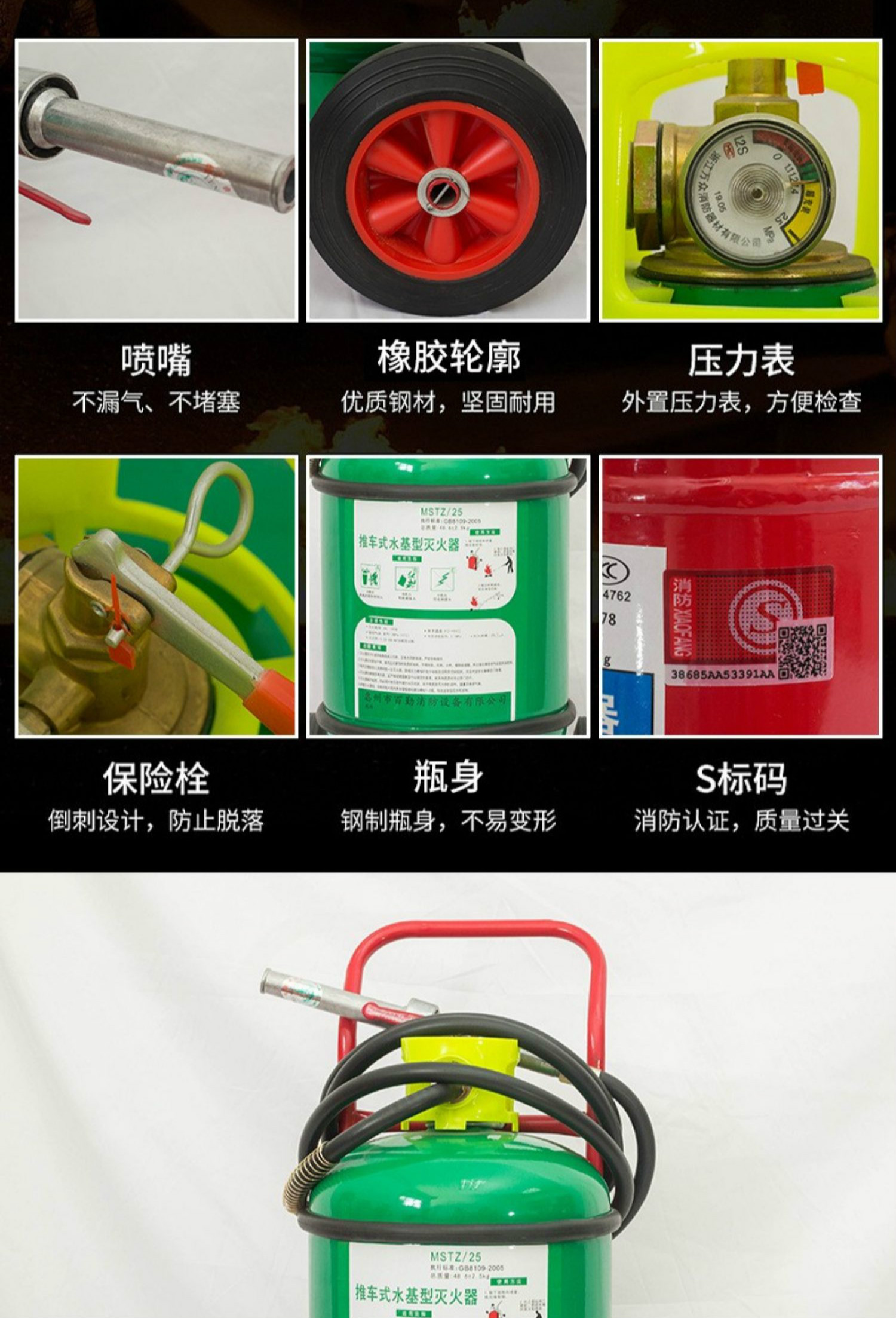 Water-based water extinguisher Large trolley-type water-based fire extinguisher MSTZ25/45/60/65L water mist foam can extinguish oil and electric fires MSTZ/45W 45L trolley-type water-based fire extinguisher water mist type