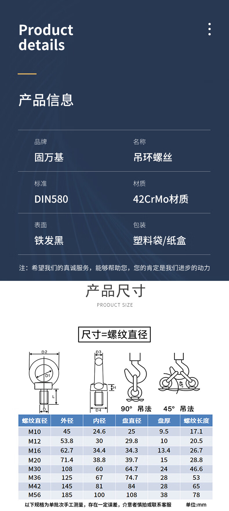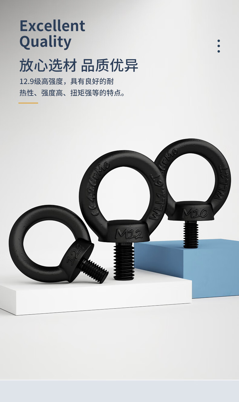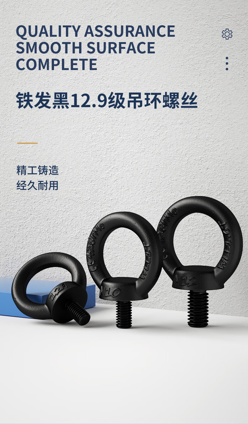 Guwanji lifting eye screw blackened 12.9 grade high strength bolt blackened mold lifting eye lifting screw national standard accessories M24 1 piece recommended load bearing 8 tons