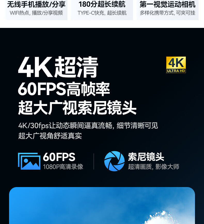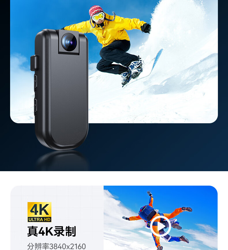 Xiaoyao pocket sports camera video artifact motorcycle riding thumb recorder chest-worn camera 4k high-definition portable panoramic helmet small camera DV 4K high-definition starlight night vision/64G