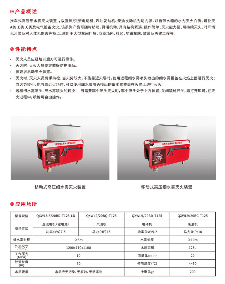 JSGA fire high-pressure water mist fire extinguishing device mobile water mist cart type water mist gasoline engine drive XSWY10/20-T125-GA-1
