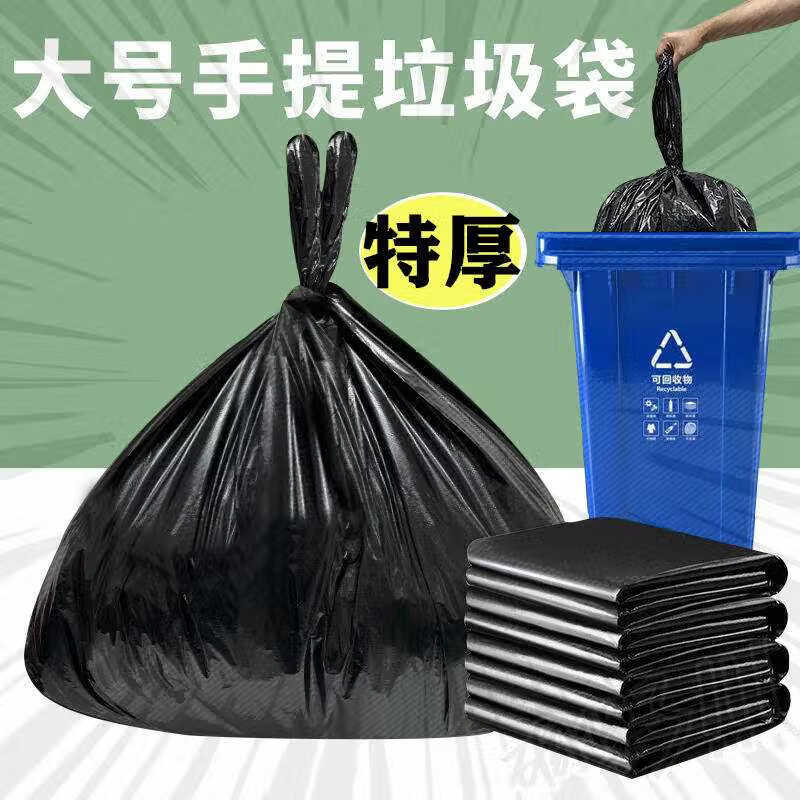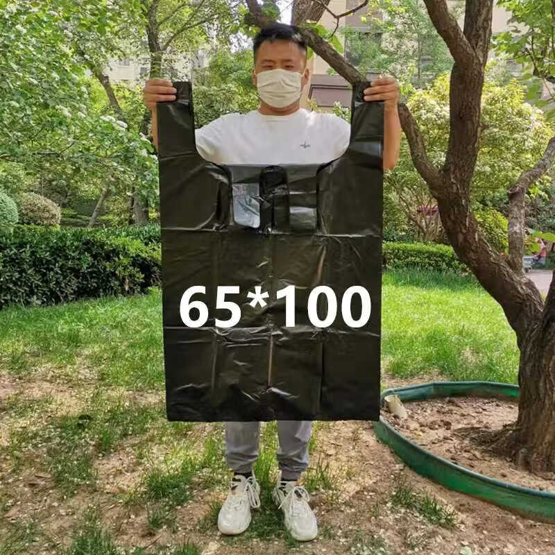 Large garbage bag, vest-style portable, extra thick, commercial, extra thick, property sanitation, outdoor special black bucket, black 75*110cm extra thick, 50 pieces