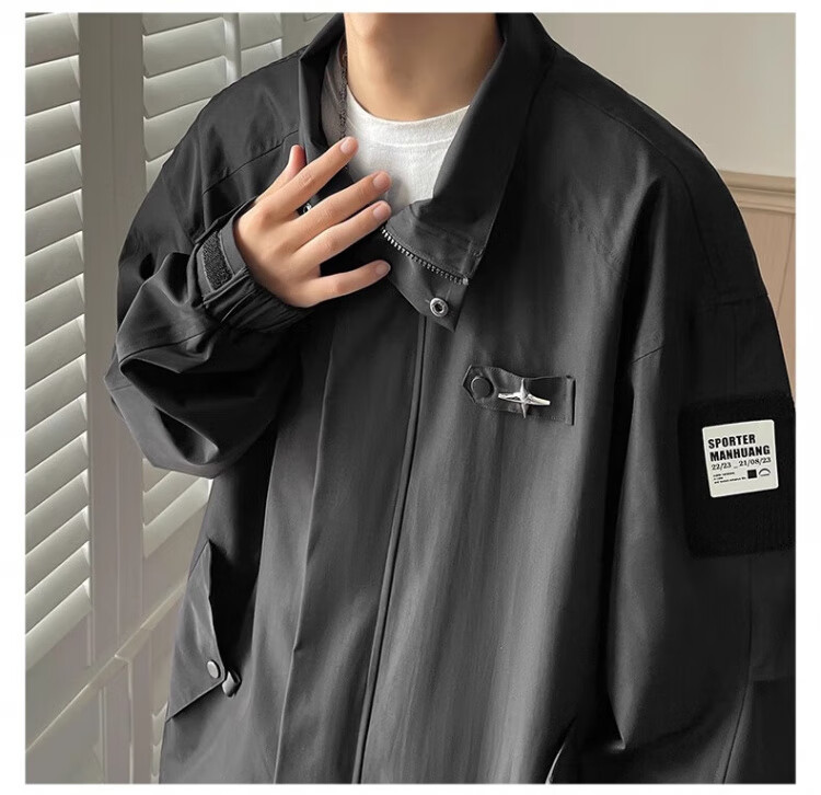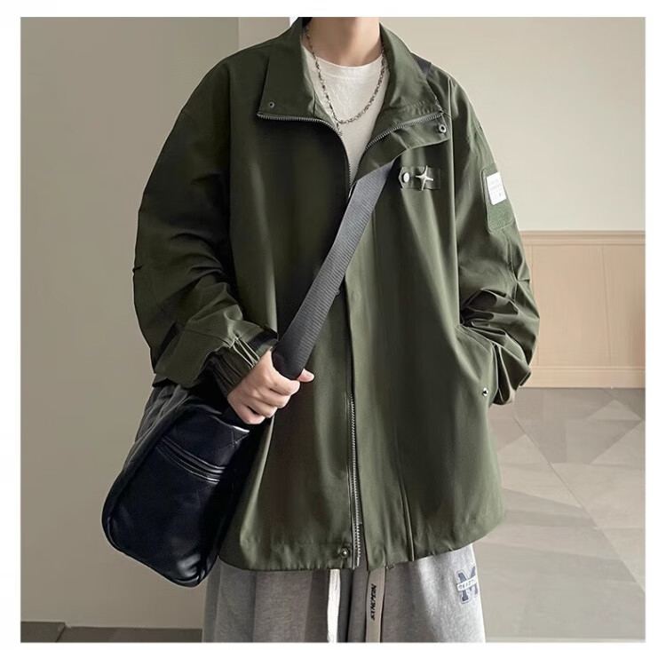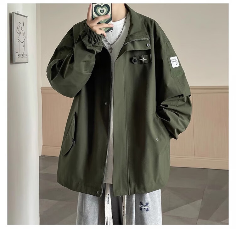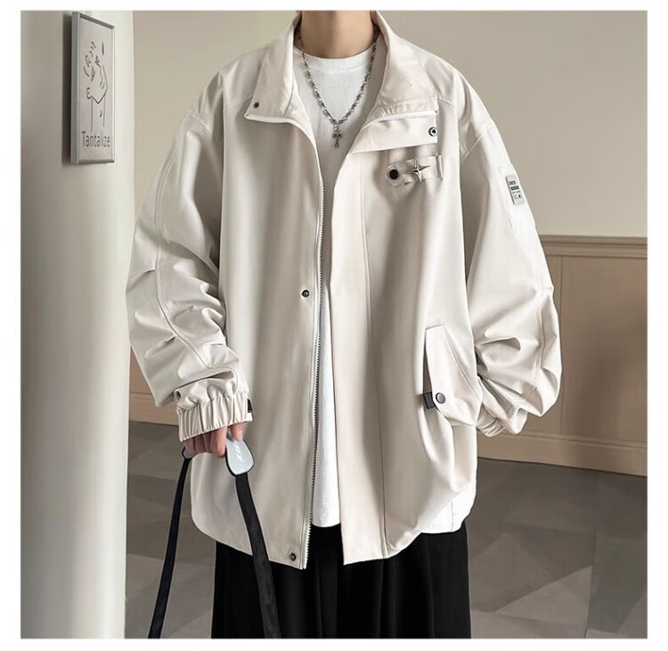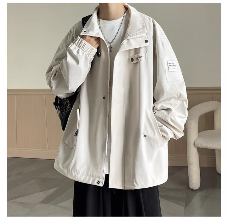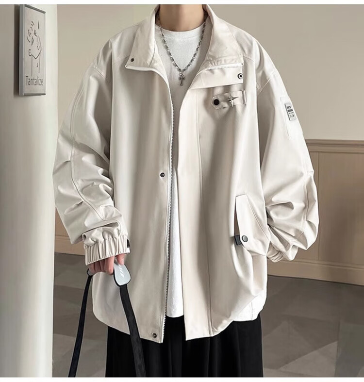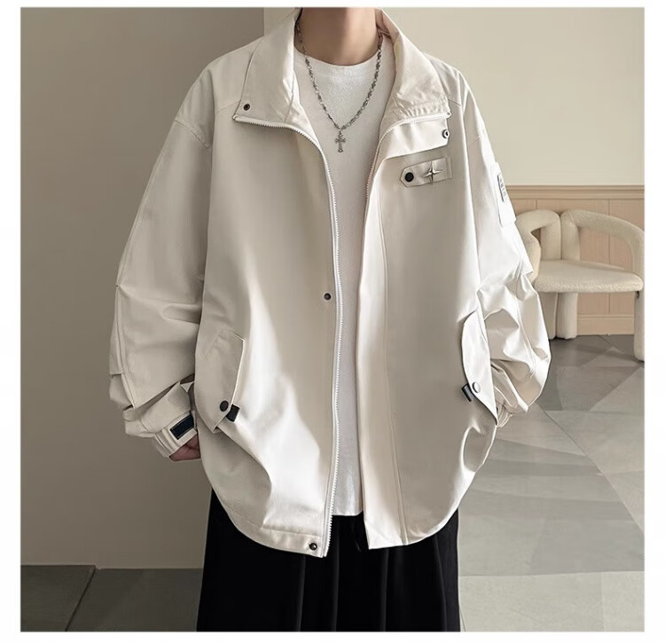 Foss Phil Men's Jacket Workwear Youth Hong Kong Style Handsome Simple Casual Jacket Thickened Warm Jacket Autumn and Winter Men DJS-Q2125 Apricot L 115 Jin-130 Jin
