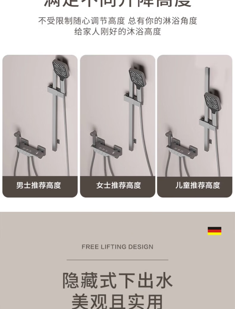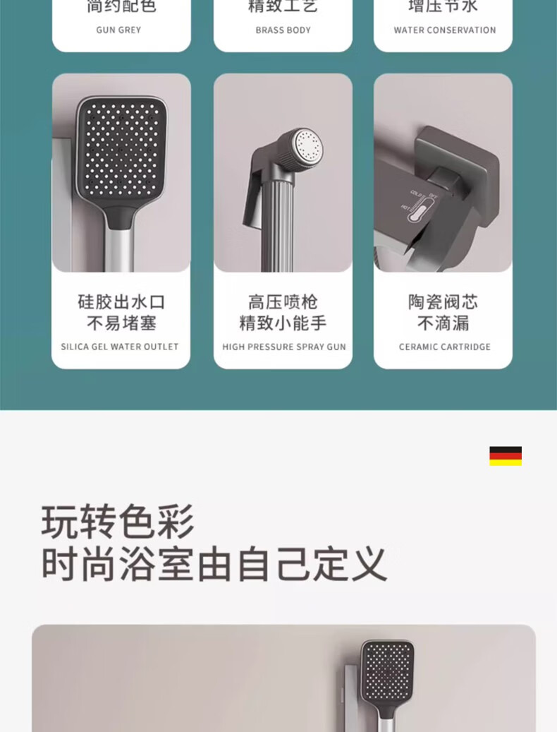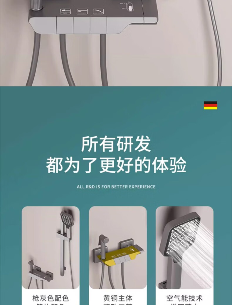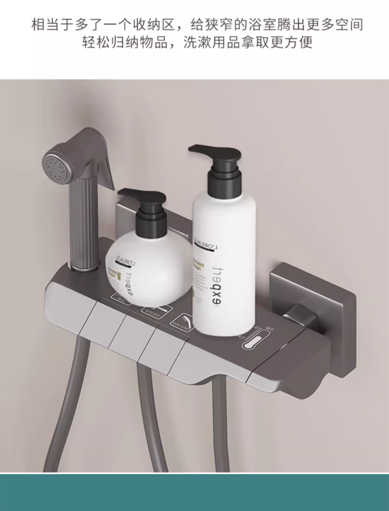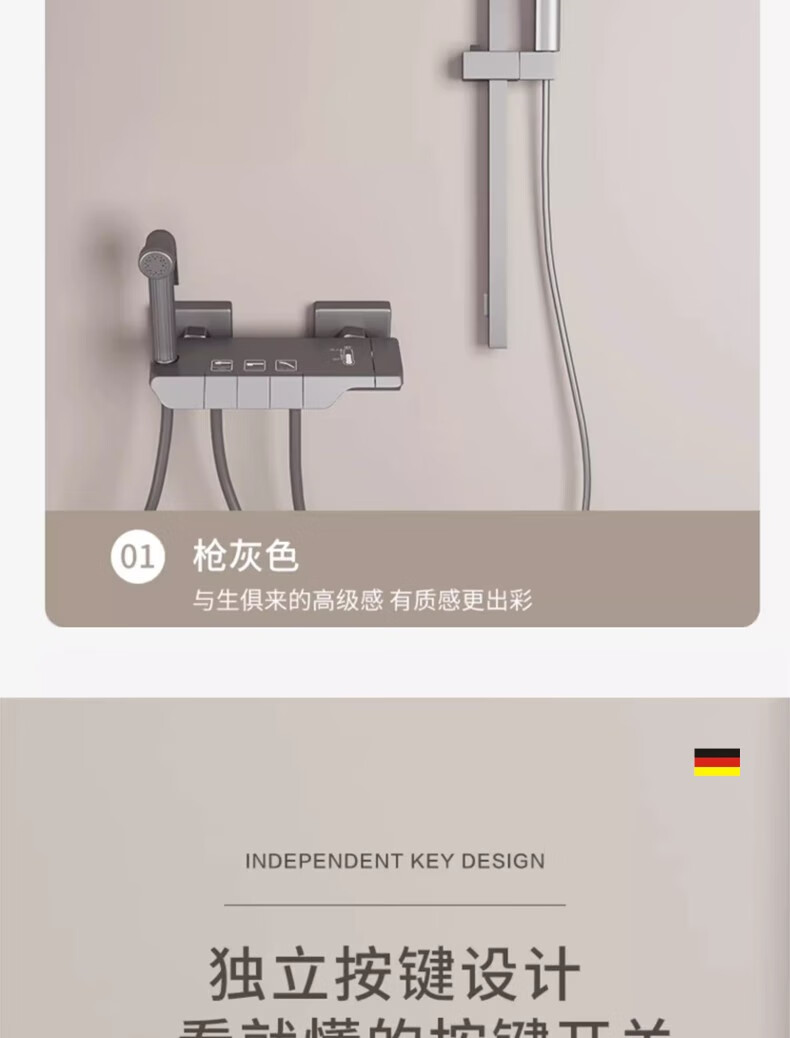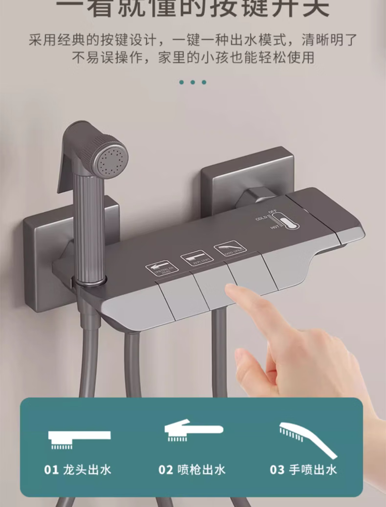 Wuzory all-copper main body simple shower head set bathroom bathroom ceilingless spray bathtub bath nozzle piano button simple shower set gun gray fine copper thickened main body丨with supercharged spray gun design