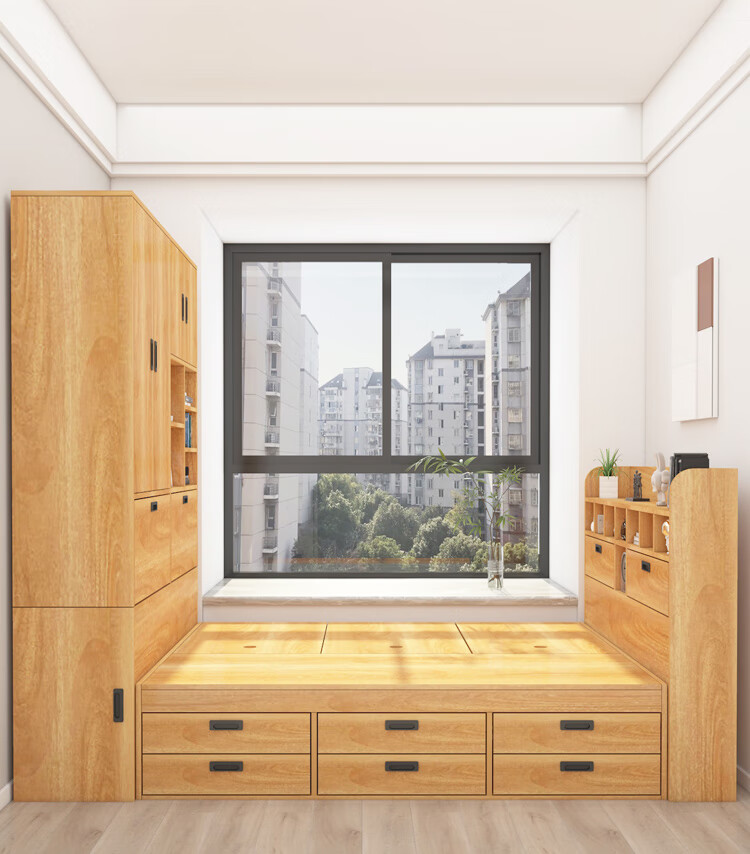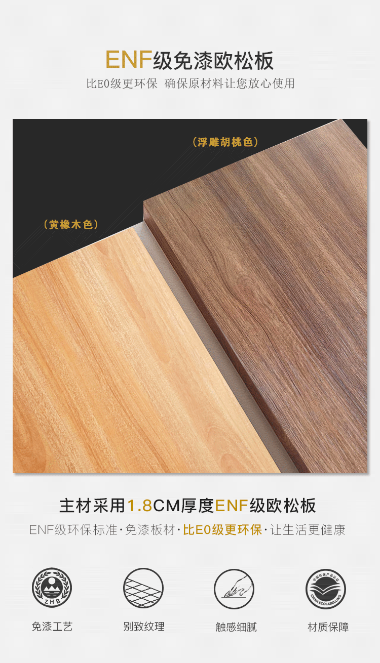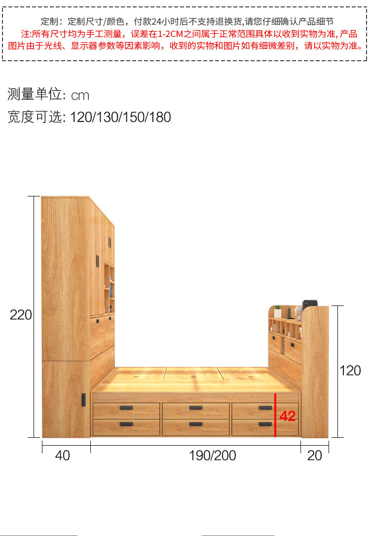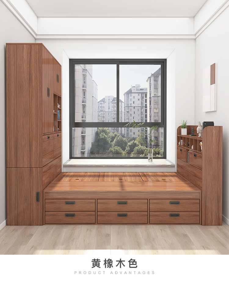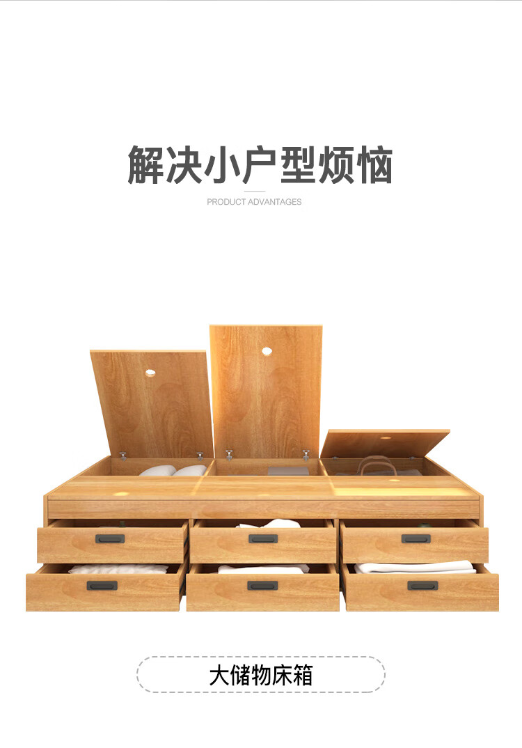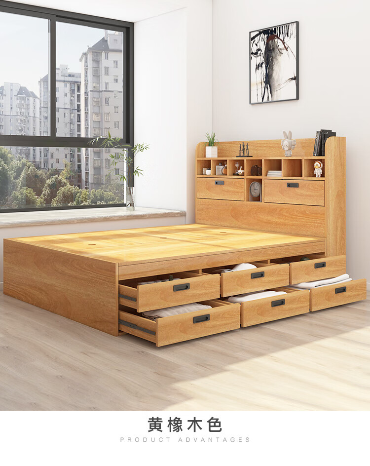 Pingziji small apartment tatami bed combination set high box storage drawer bed bedroom furniture ENF grade paint-free board customization embossed walnut color 1.5m tatami + standing cabinet + bedside