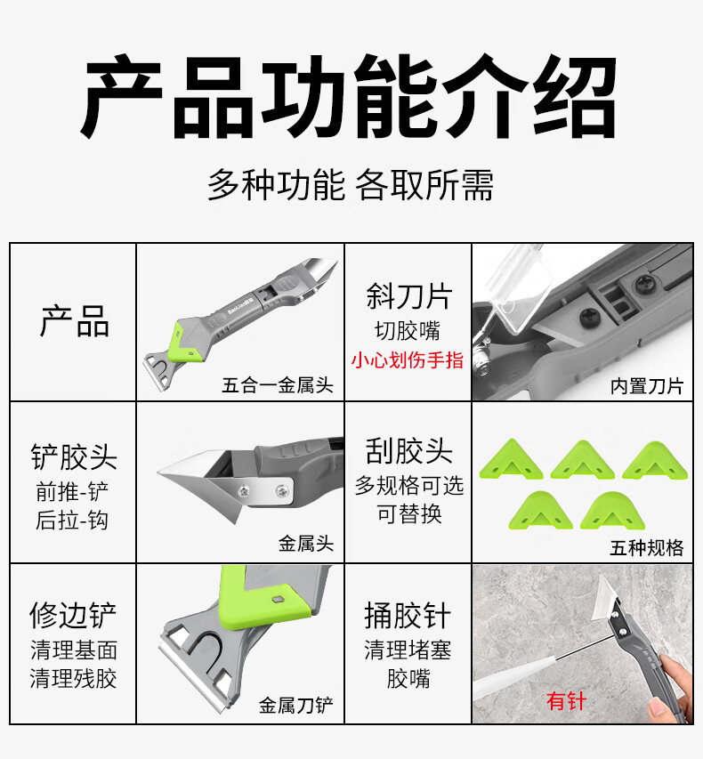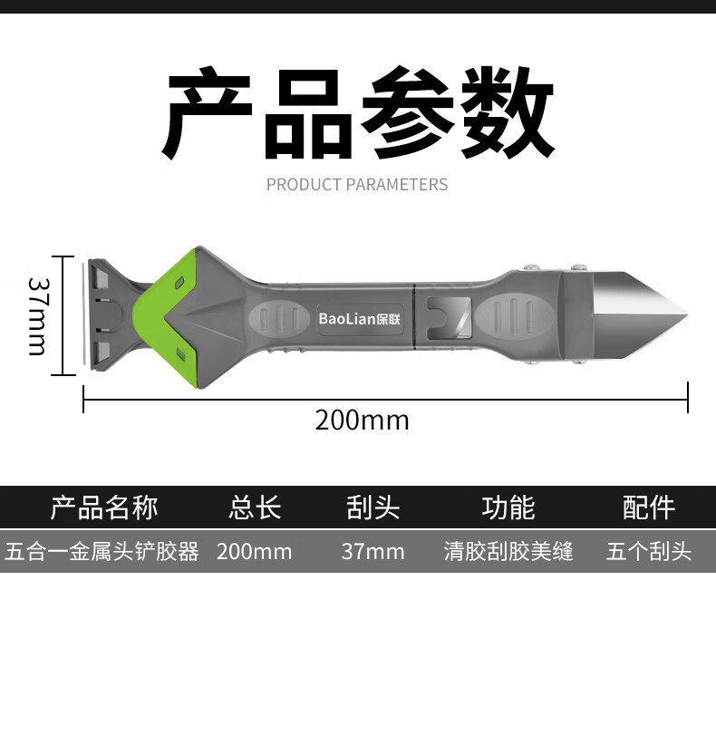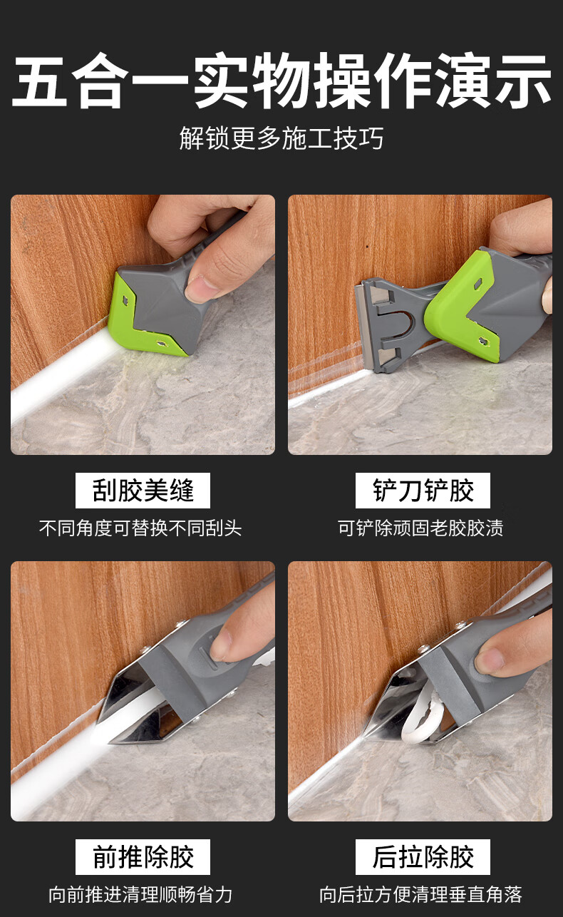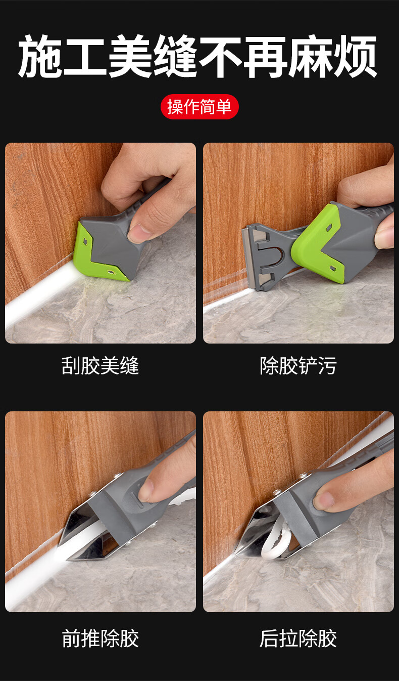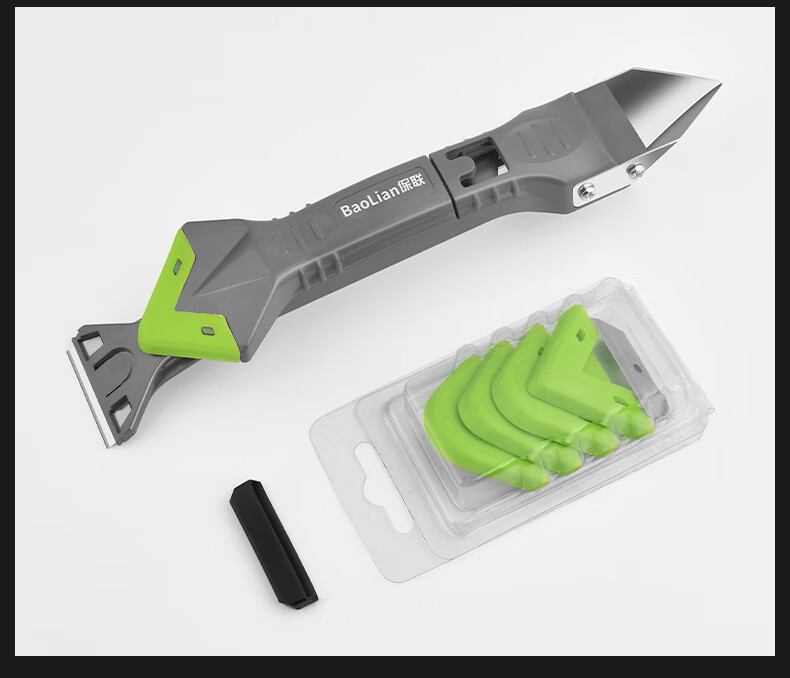 Baolian glue scraper, special blade for seams, glass glue scraper, glue scraper, seam clearing, glue cleaning, inner corner glue removal blade, three-in-one, basic metal head, black