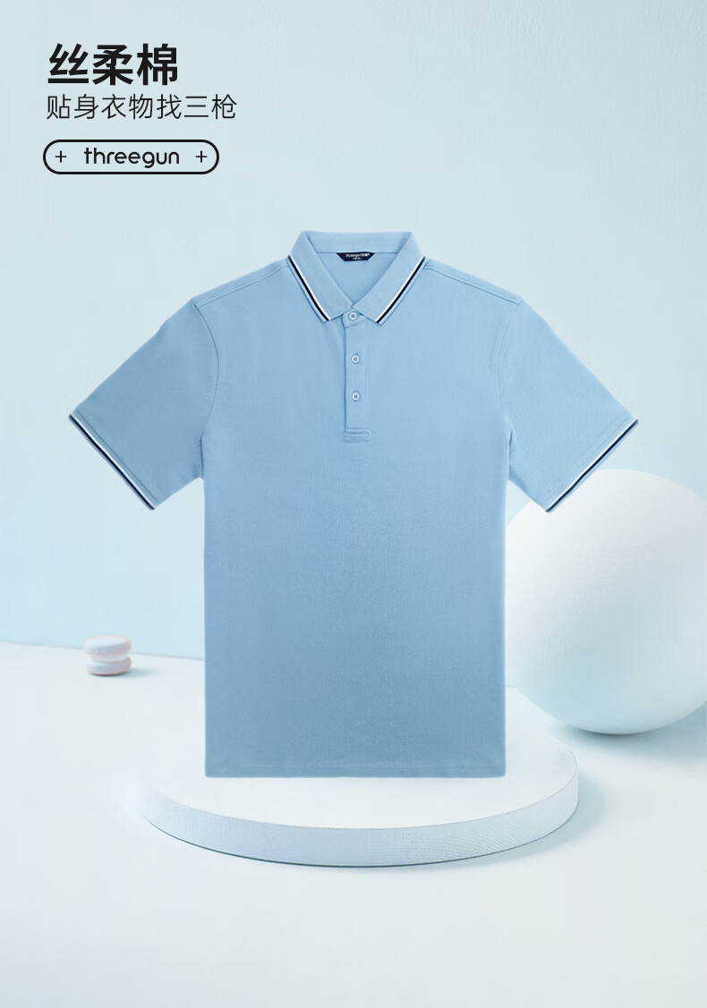Three-gun lapel short-sleeved T-shirt men's new silk soft cotton collared bottoming slim top men's shirt Navy L