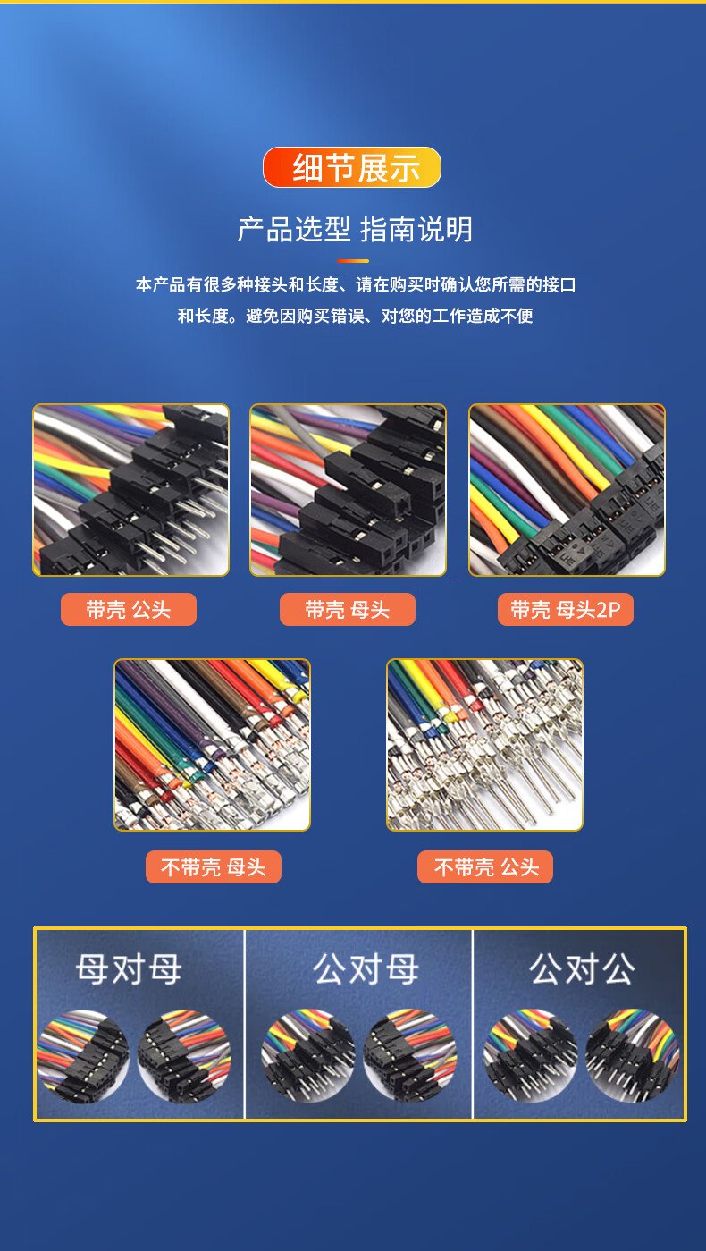 DuPont cable male to male female to female male to female 40p rehearsal cable connecting cable copper core silicone Dupont cable 10/15/20/30/40/cm pure copper gold plated thick 28 core female to female 2.54mm (1M) others