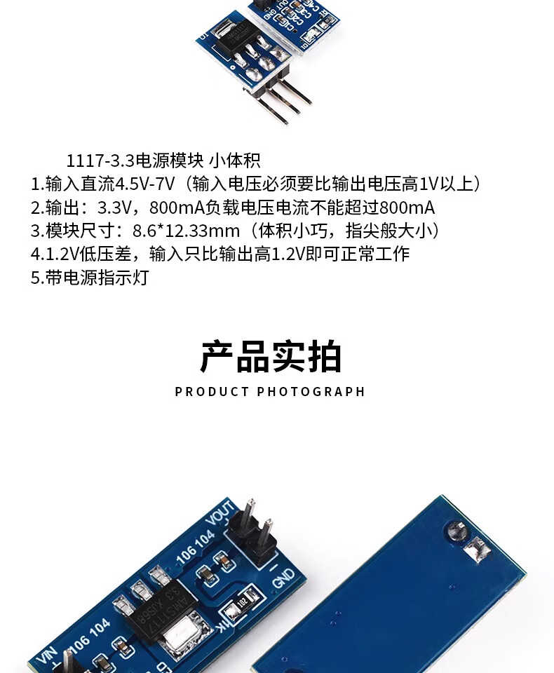 Dengshitang AMS 1.2/1.5/1.8/2.5/5.0/ 3.3V power module 1117 Buck regulated power supply board pins 1117-3.3V Solder the pin headers